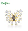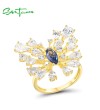 SANTUZZA 925 Sterling Silver Ring Blue Spinel White CZ Butterfly Jewelry