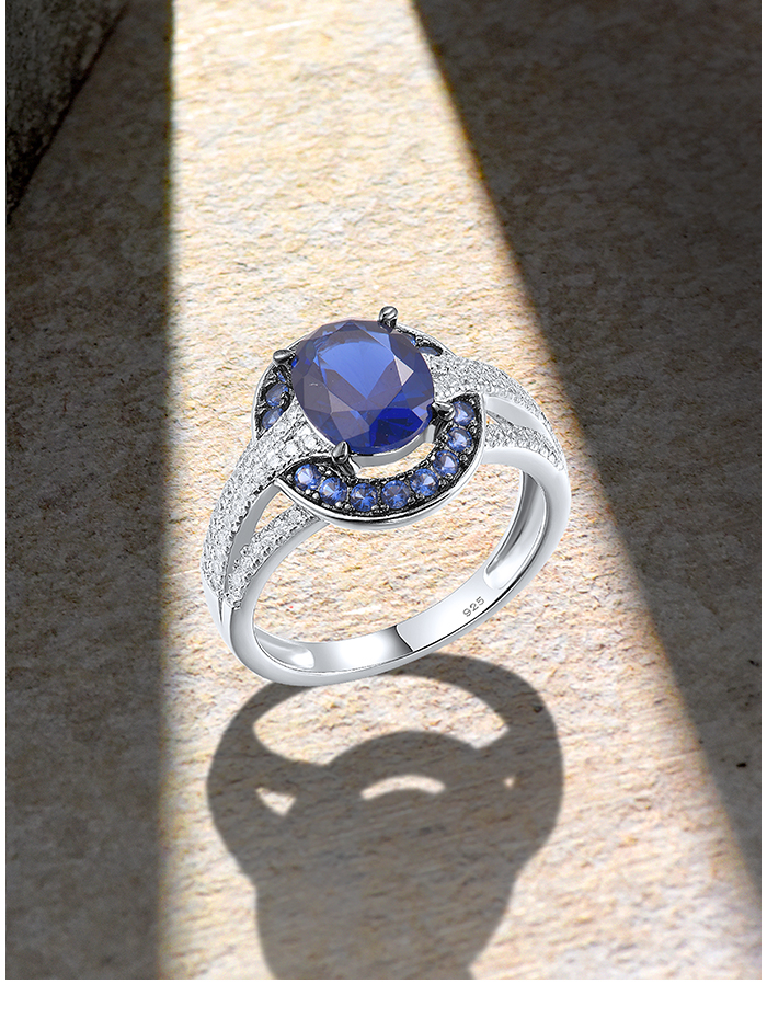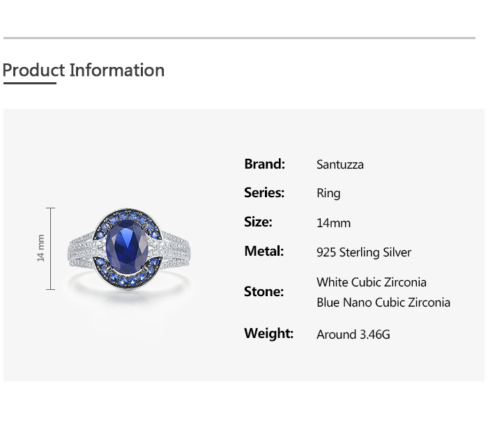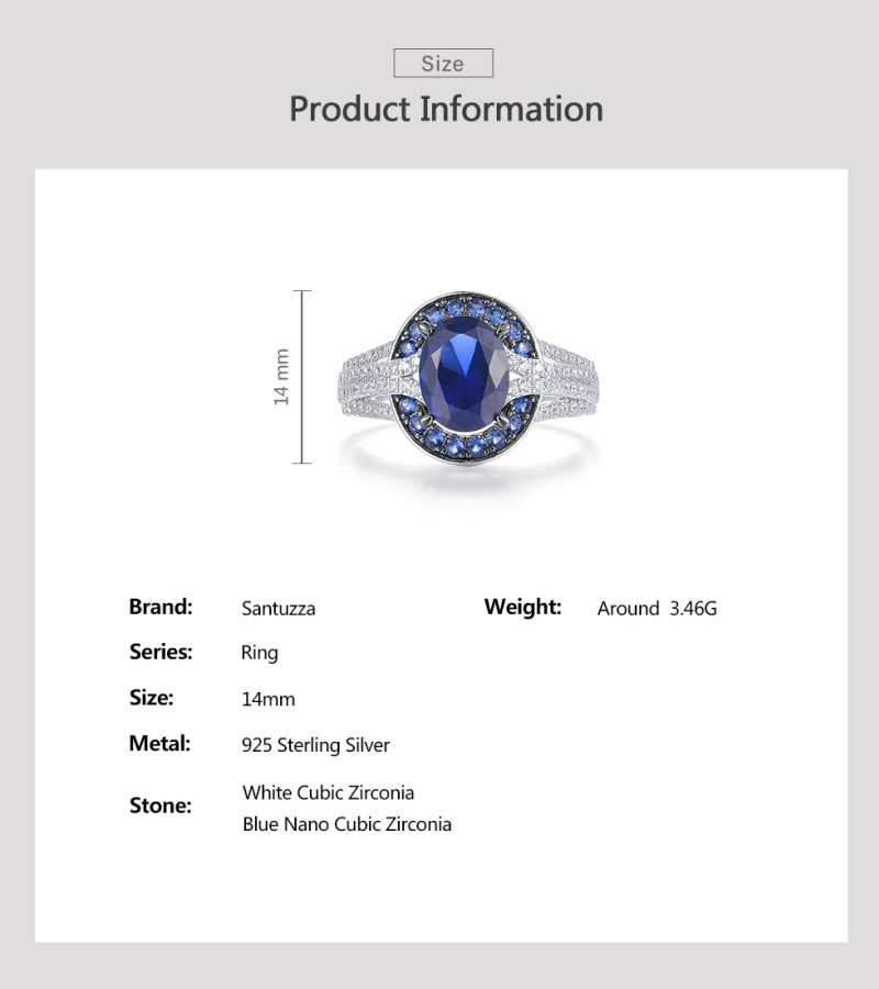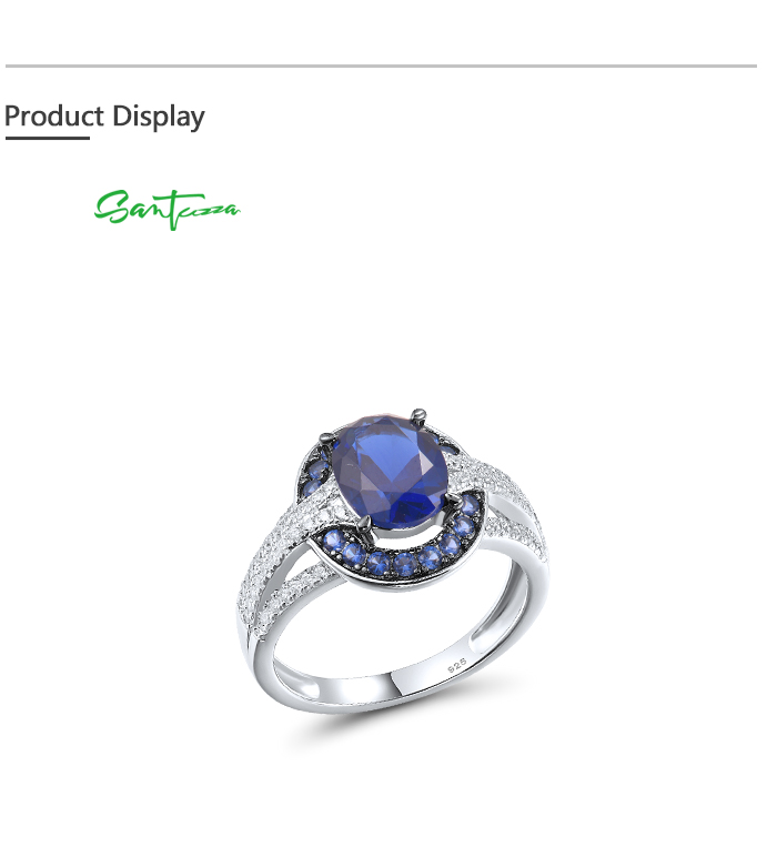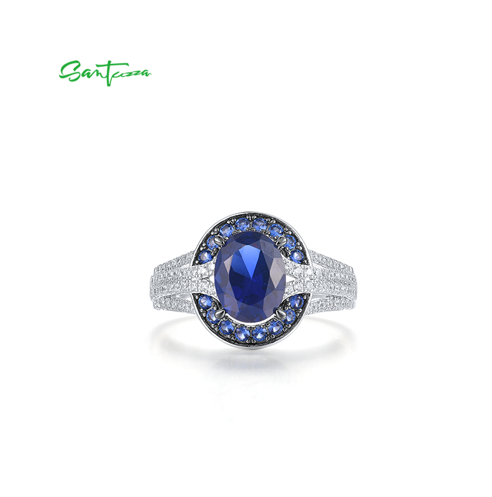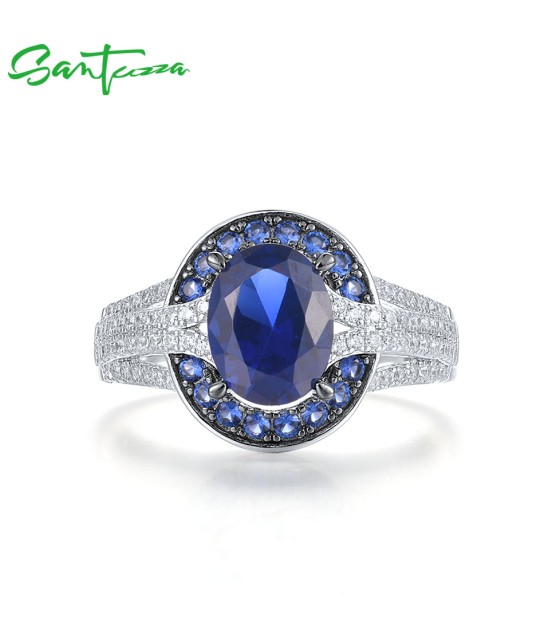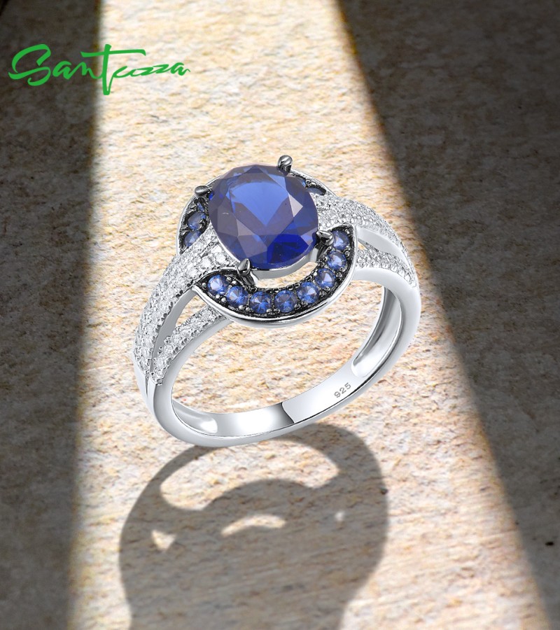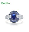 SANTUZZA Silver Rings 925 Sterling Silver Blue Stones White CZ Solitaire Ring Jewelry