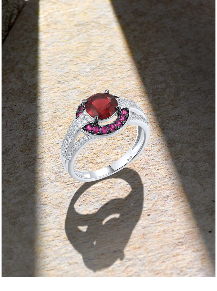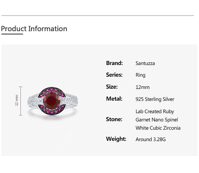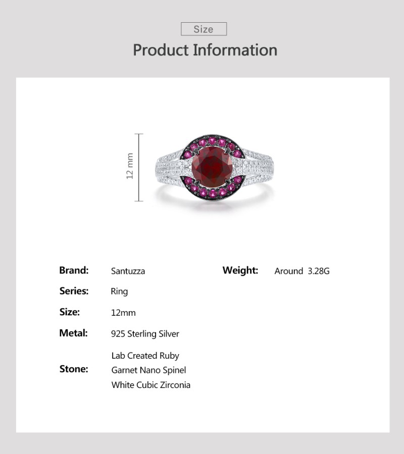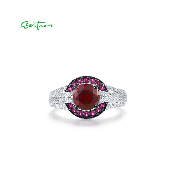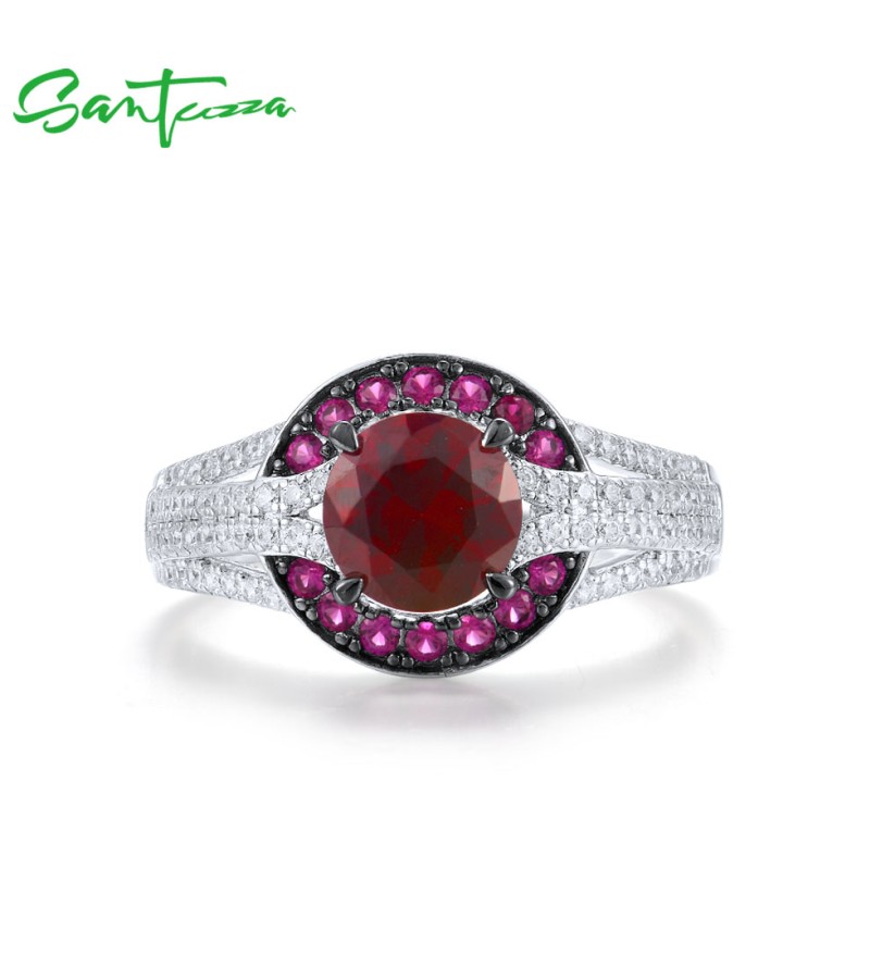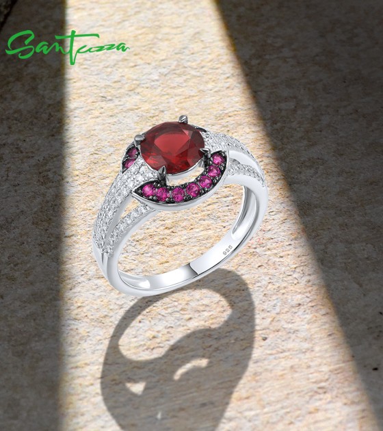 SANTUZZA Silver Rings 925 Sterling Silver Red Stones Solitaire Ring Jewelry