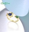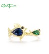 SANTUZZA 925 Sterling Silver Rings Blue Green Stones Black Spinel Fish Adjustable Ring Fine Jewelry
