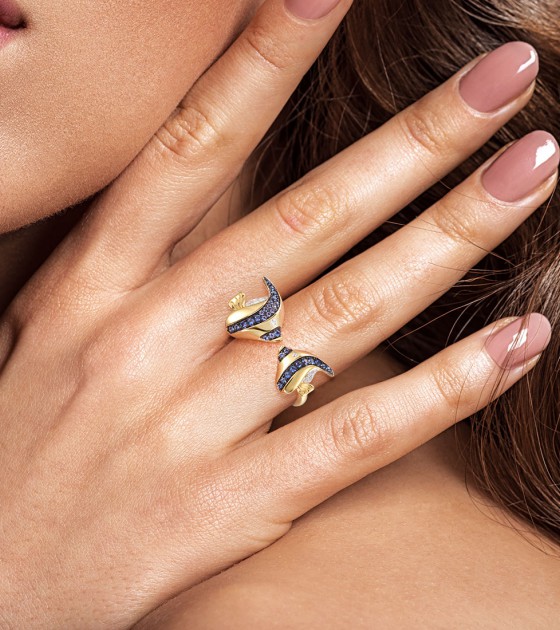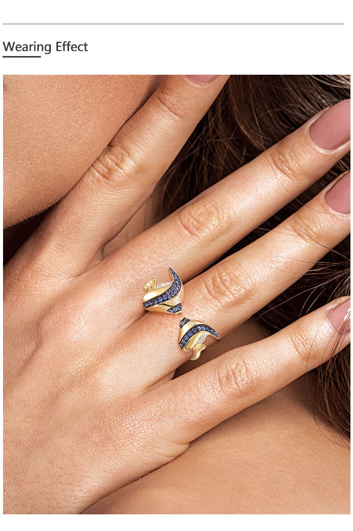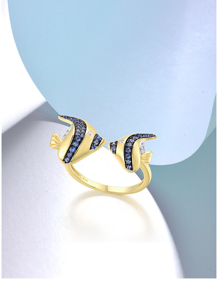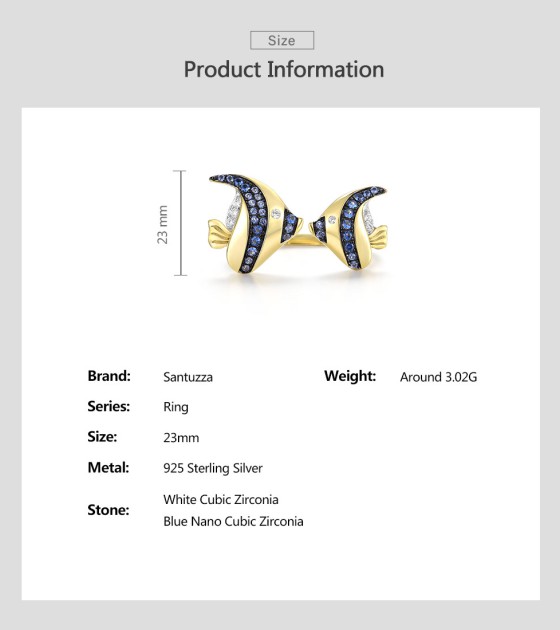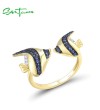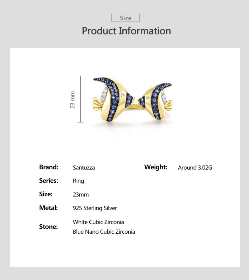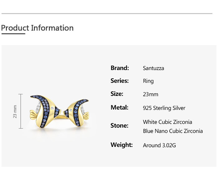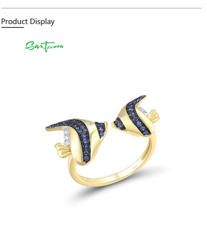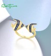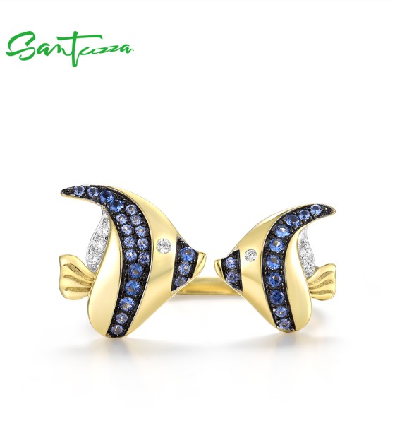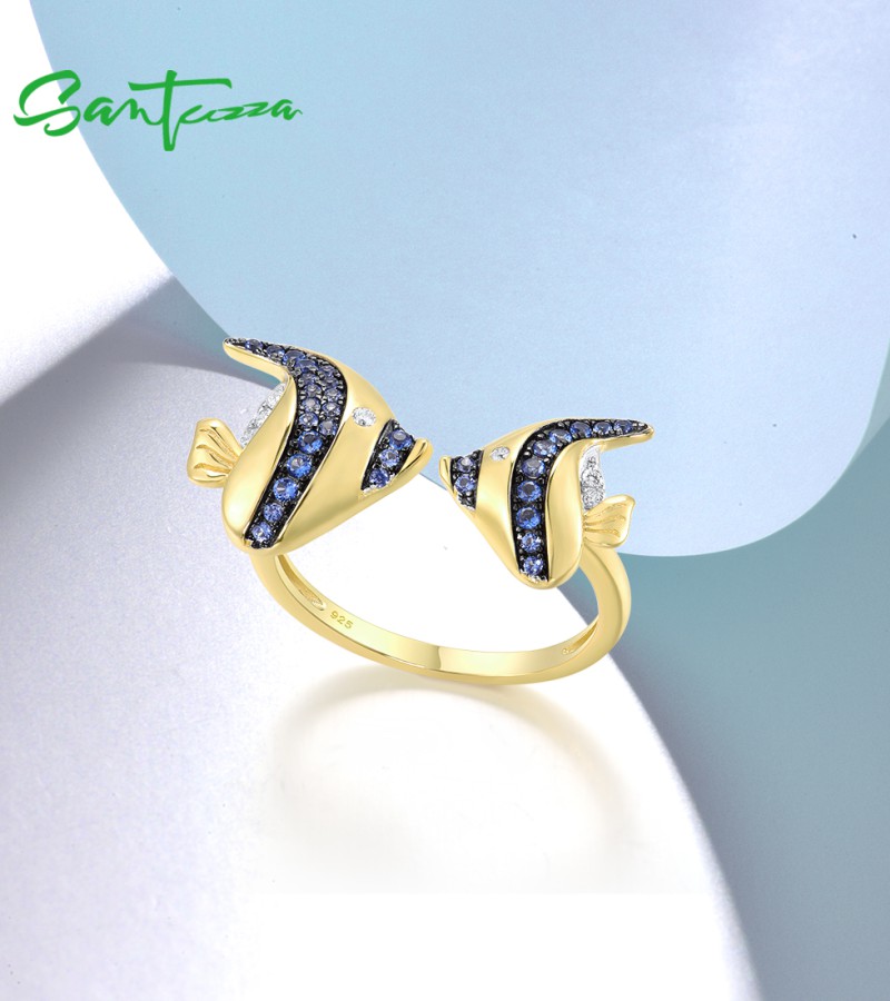 SANTUZZA 925 Sterling Silver Rings Blue White Cubic Zirconia Fish Adjustable Ring Fine Jewelry