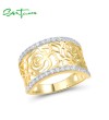 SANTUZZA 925 Sterling Silver Rings White Cubic Zirconia Rose Lace Flower Ring Jewelry