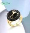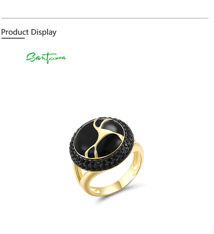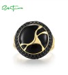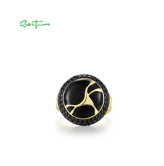 SANTUZZA 925 Sterling Silver Oriental Ring Black Spinel Antique Look Enamel Jewelry - US 9