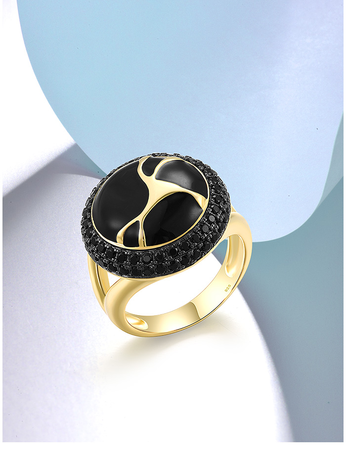 SANTUZZA 925 Sterling Silver Oriental Ring Black Spinel Antique Look Enamel Jewelry - US 10