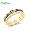 SANTUZZA 925 Sterling Silver Ring White Cubic Zirconia Yellow Black Plating Luxury Jewelry