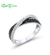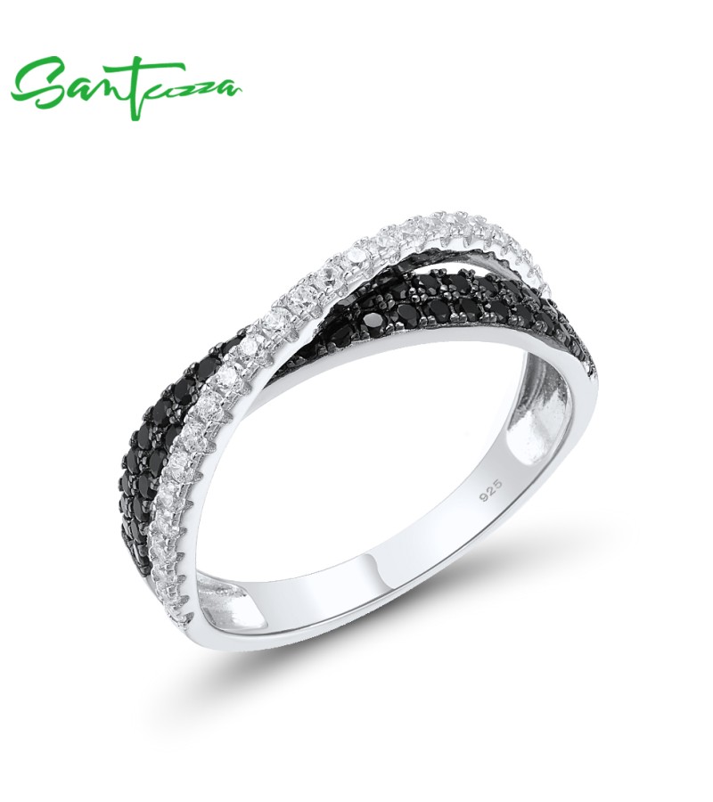SANTUZZA Silver Ring 925 Sterling Silver Black Brown Spinel White CZ Cross Fine Jewelry - US 6/Silver Color