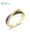 SANTUZZA Silver Ring 925 Sterling Silver Black Brown Spinel White CZ Cross Fine Jewelry - US 9/Yellow Gold Plating