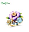 SANTUZZA 925 Sterling Silver Ring Blooming Purple Flower Blue Spinel Fine Jewelry Enamel