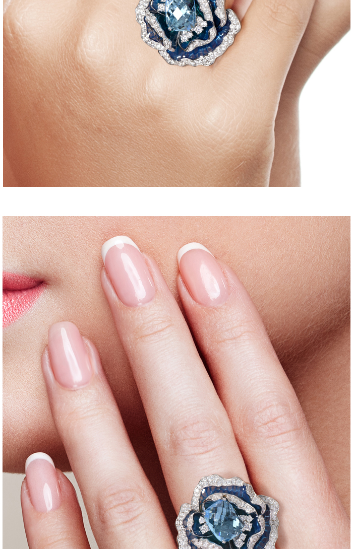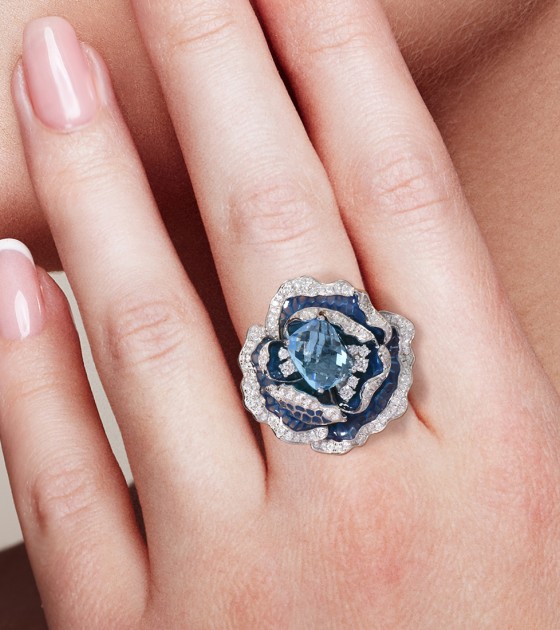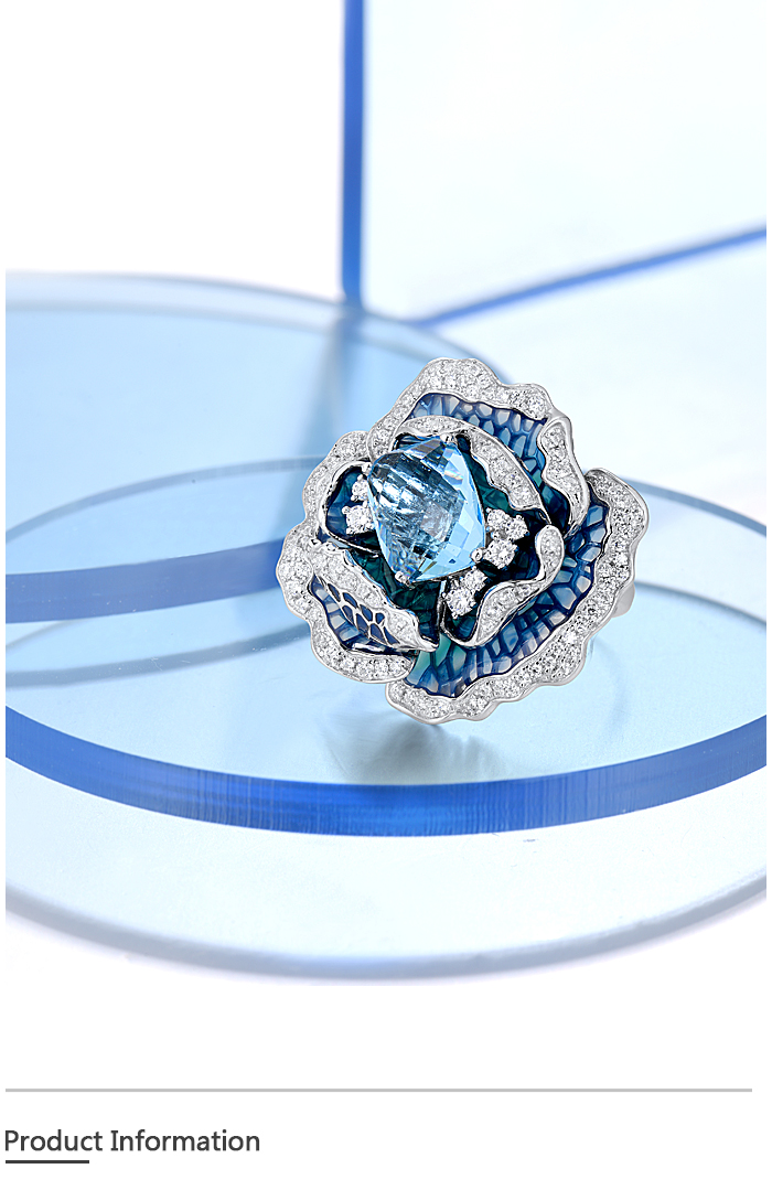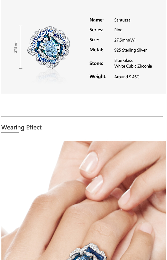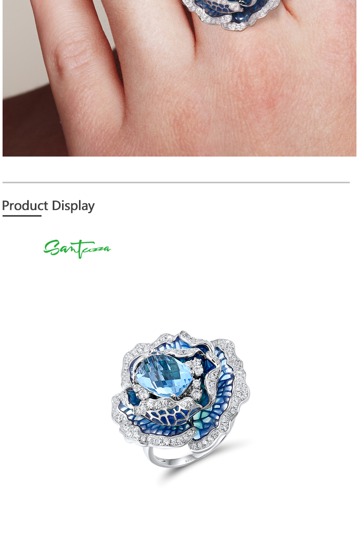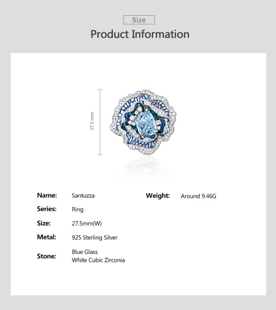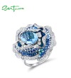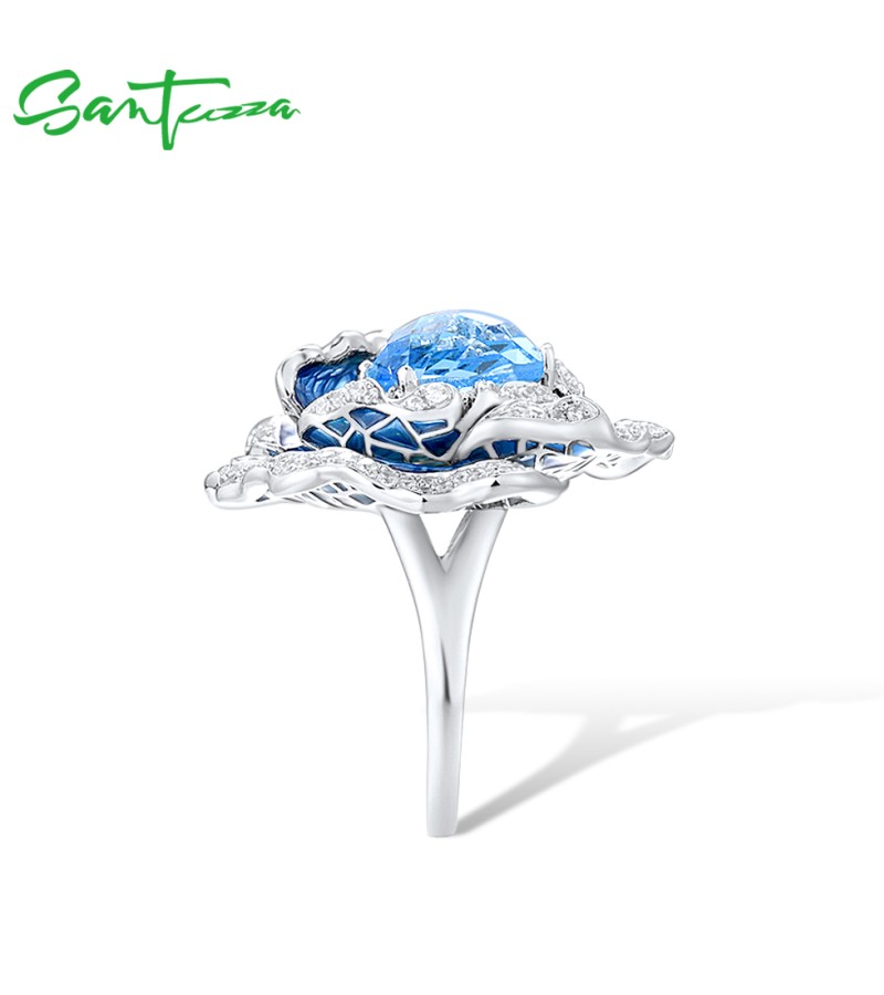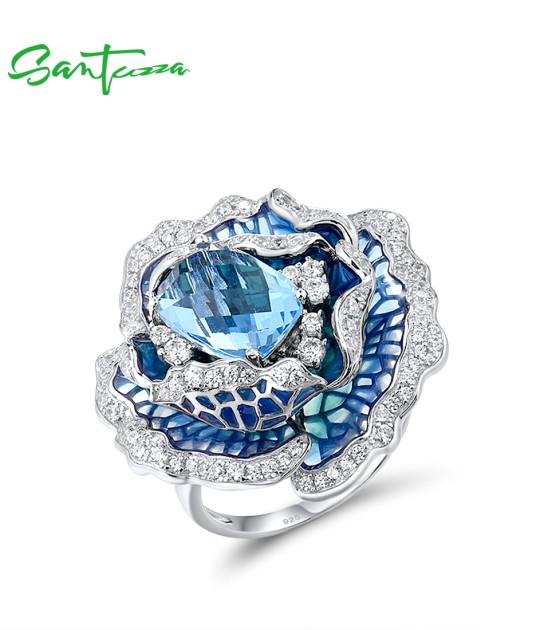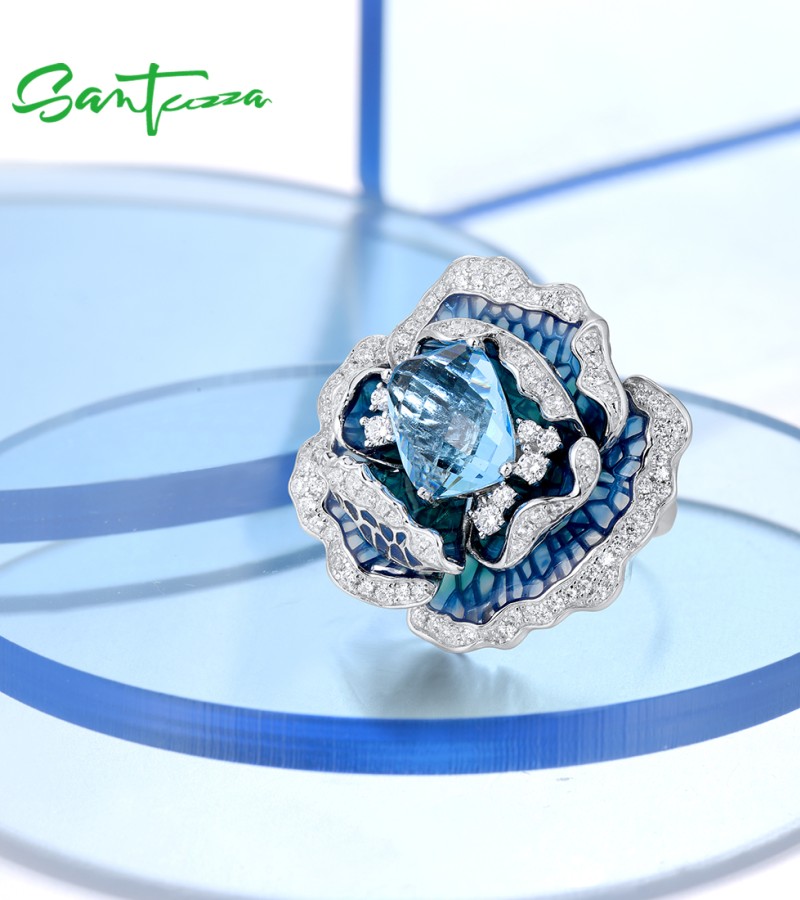 SANTUZZA 925 Sterling Silver Ring Blue Blooming Flower Fine Jewelry Enamel