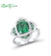 SANTUZZA 925 Sterling Silver Rings Square Green Spinel White CZ Flower Fine Jewelry
