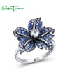 SANTUZZA 925 Sterling Silver Ring Blue Pink Stone Lily Flower Jewelry