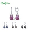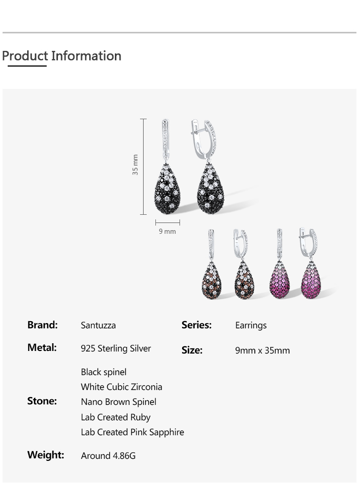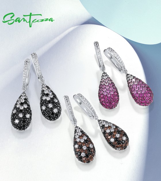 SANTUZZA 925 Sterling Silver Drop Earrings Sparkling Multi Color Gems Oval Fine Jewelry