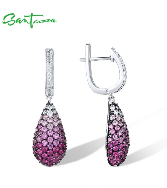 SANTUZZA 925 Sterling Silver Drop Earrings Sparkling Multi Color Gems Oval Fine Jewelry - Pink and Red Stones