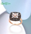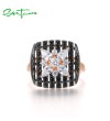 SANTUZZA 925 Sterling Silver Rings Black Spinel White CZ Star Fine Jewelry