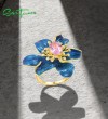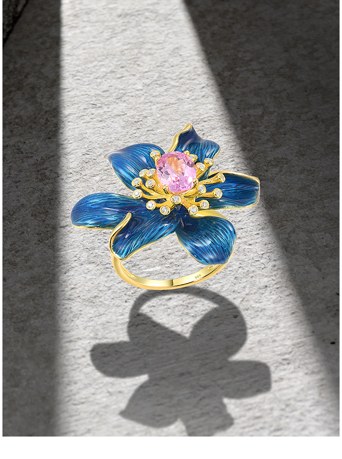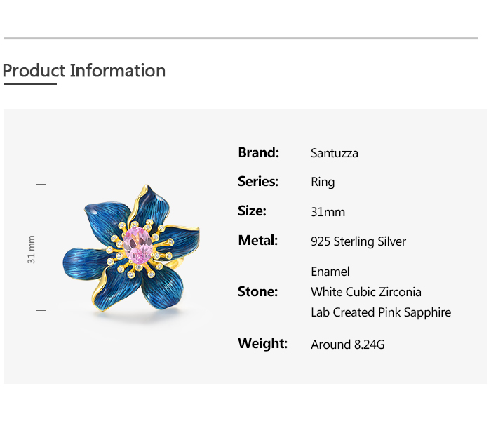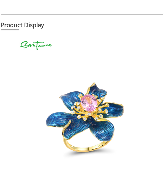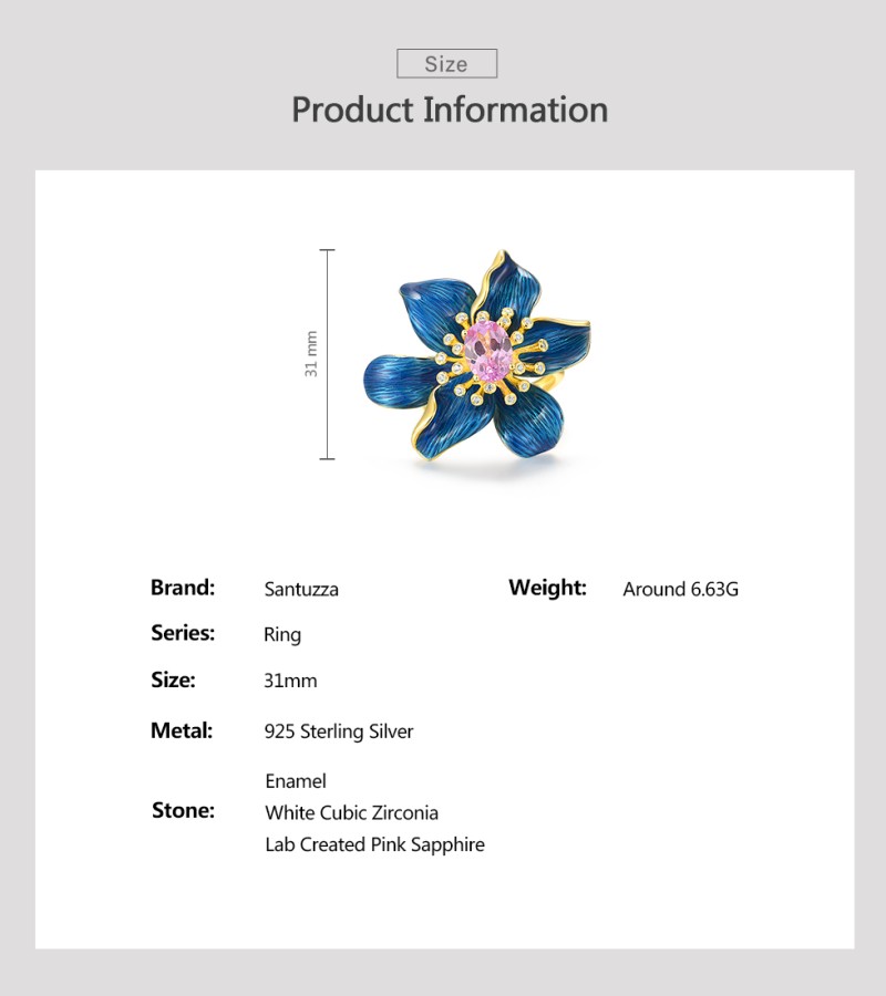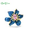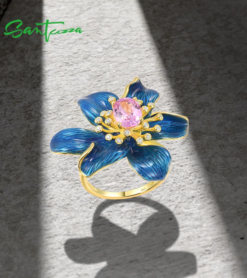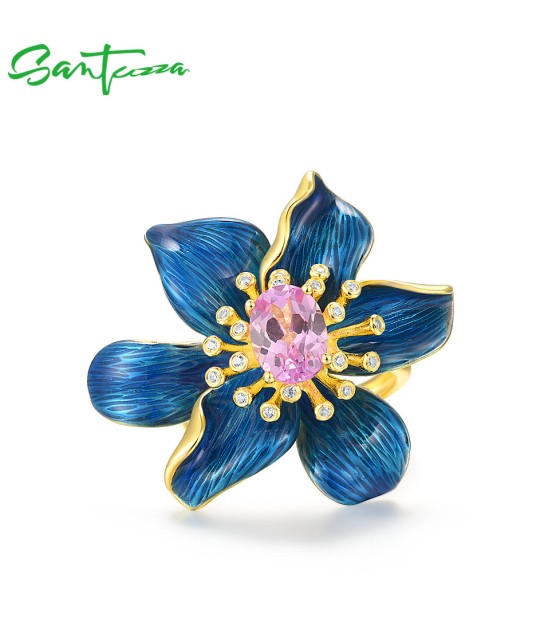 SANTUZZA Silver Rings 925 Sterling Silver Enamel Blue Flower Created Pink Sapphire Fine Jewelry