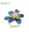 SANTUZZA Silver Rings 925 Sterling Silver Enamel Blue Flower Created Pink Sapphire Fine Jewelry