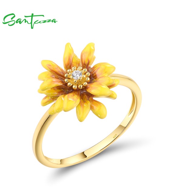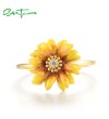 SANTUZZA 925 Sterling Silver Rings White CZ Yellow Enamel Flower Fine Jewelry