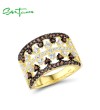 SANTUZZA 925 Sterling Silver Rings Nano Brown Spinel White CZ Gold Plated Lace Jewelry