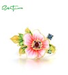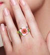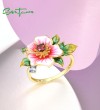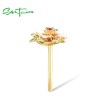 SANTUZZA 925 Sterling Silver Rings Blooming Pink Enamel Flower Garnet CZ Fine Jewelry