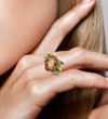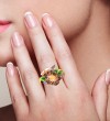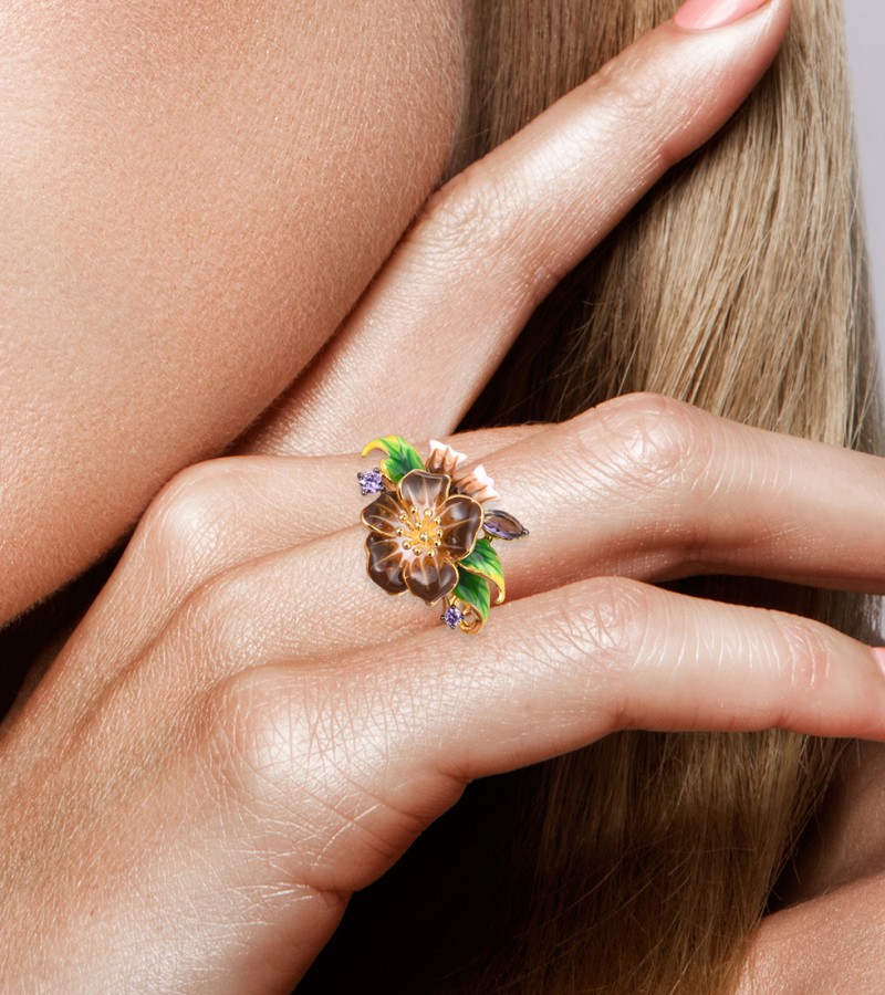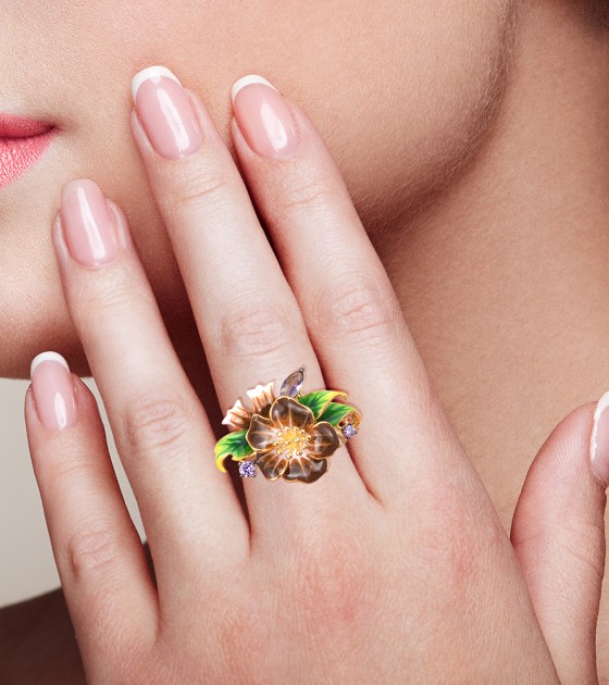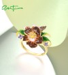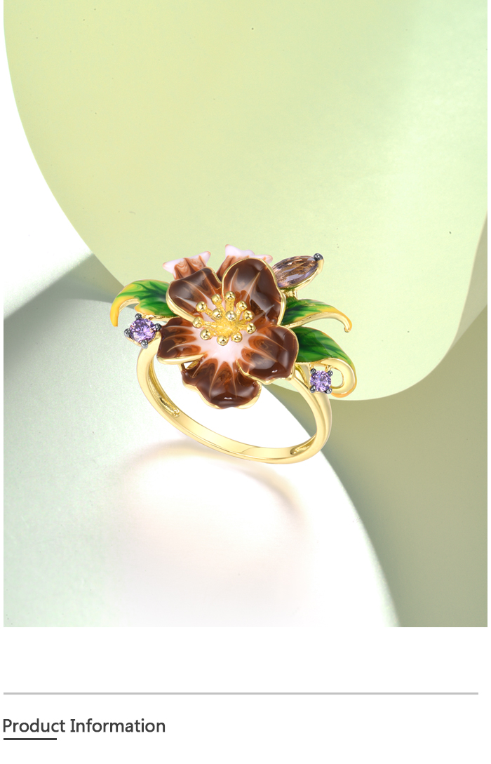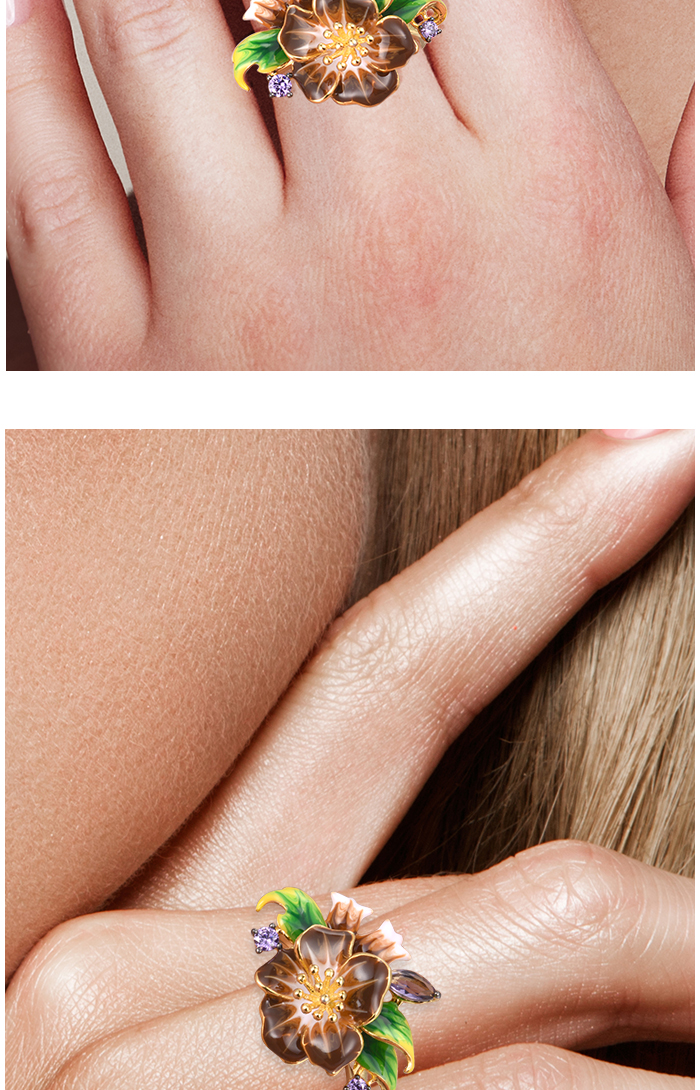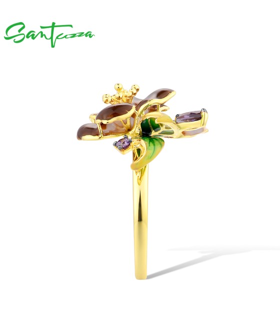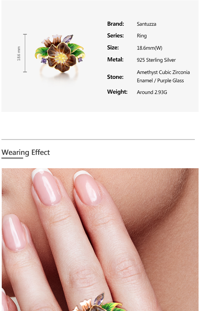 SANTUZZA 925 Sterling Silver Rings Brown Enamel Flower Amethyst CZ Fine Jewelry