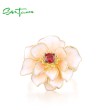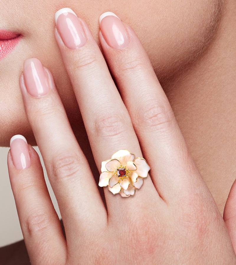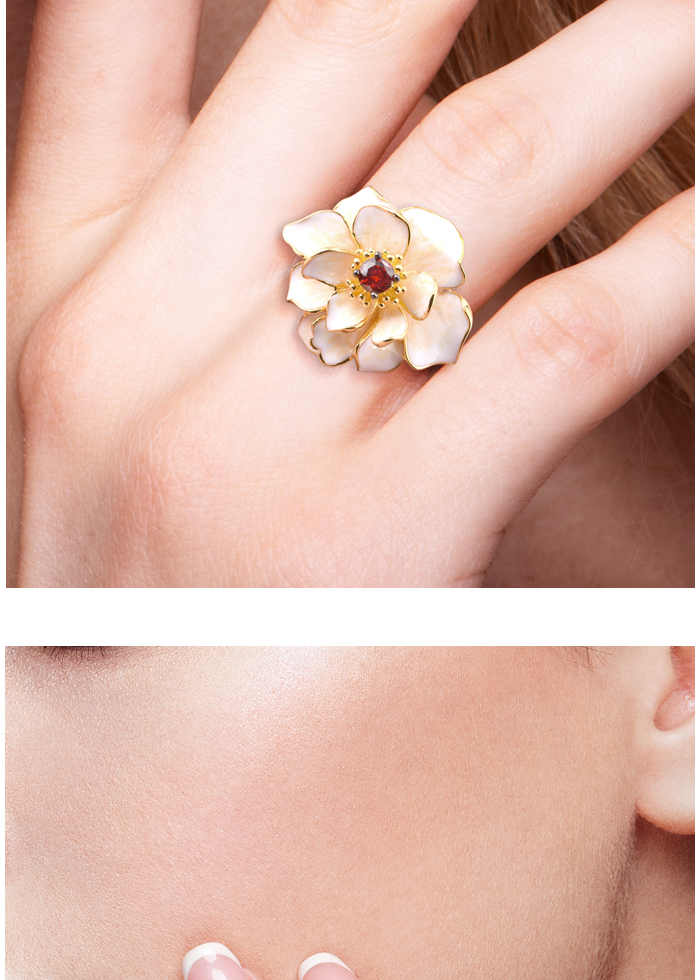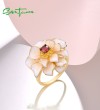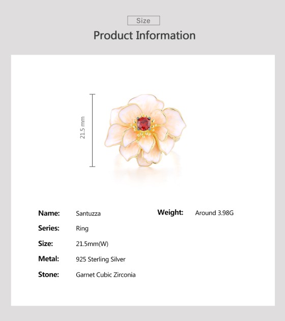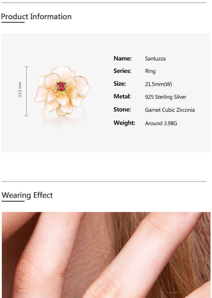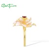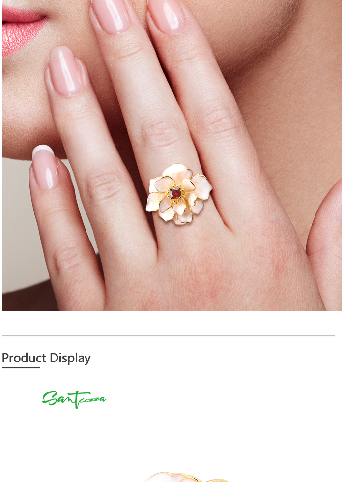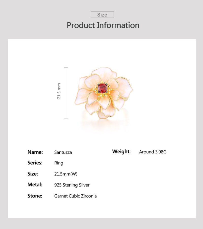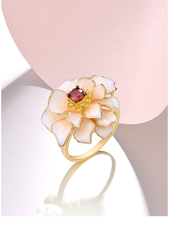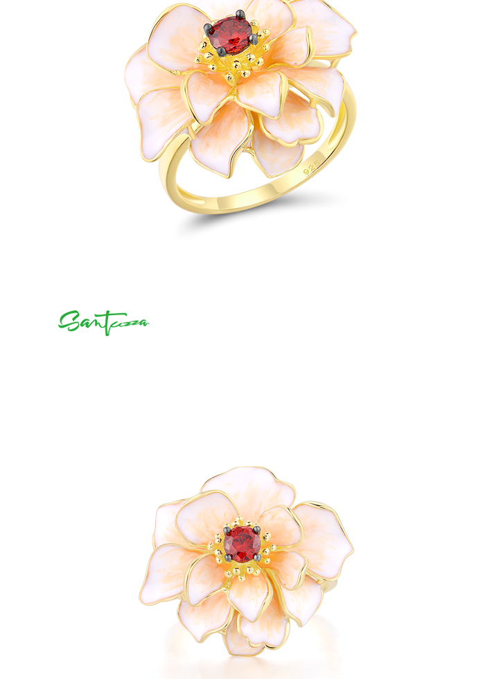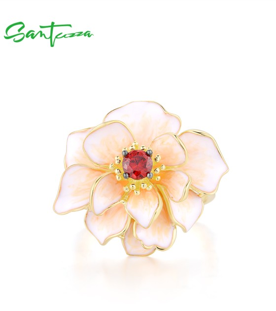 SANTUZZA 925 Sterling Silver Rings White Lotus Flower Garnet Jewelry Enamel