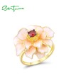 SANTUZZA 925 Sterling Silver Rings White Lotus Flower Garnet Jewelry Enamel