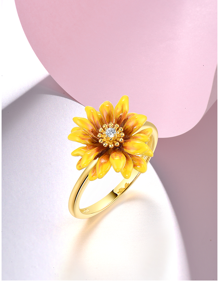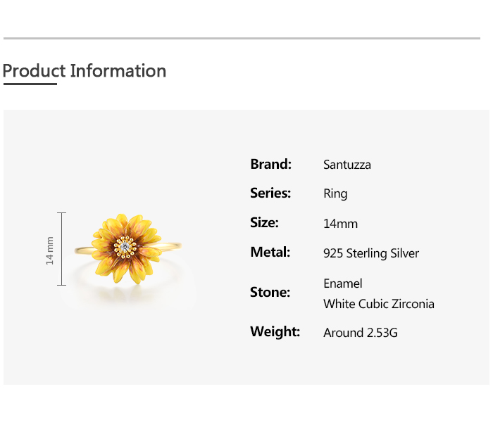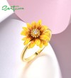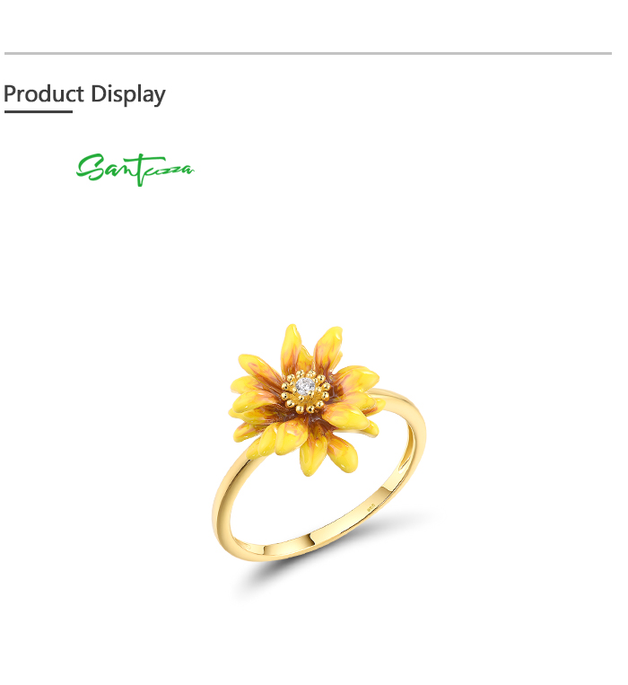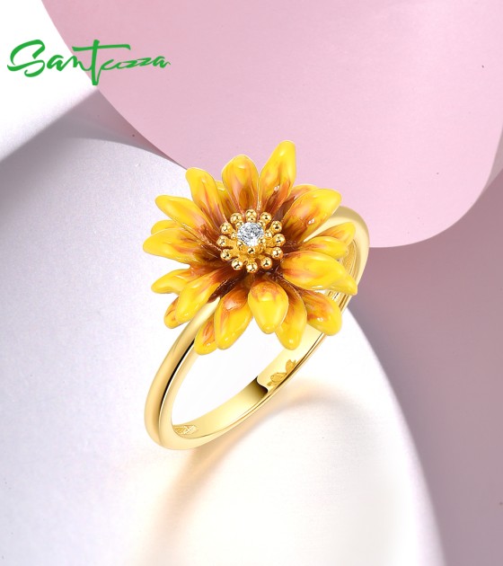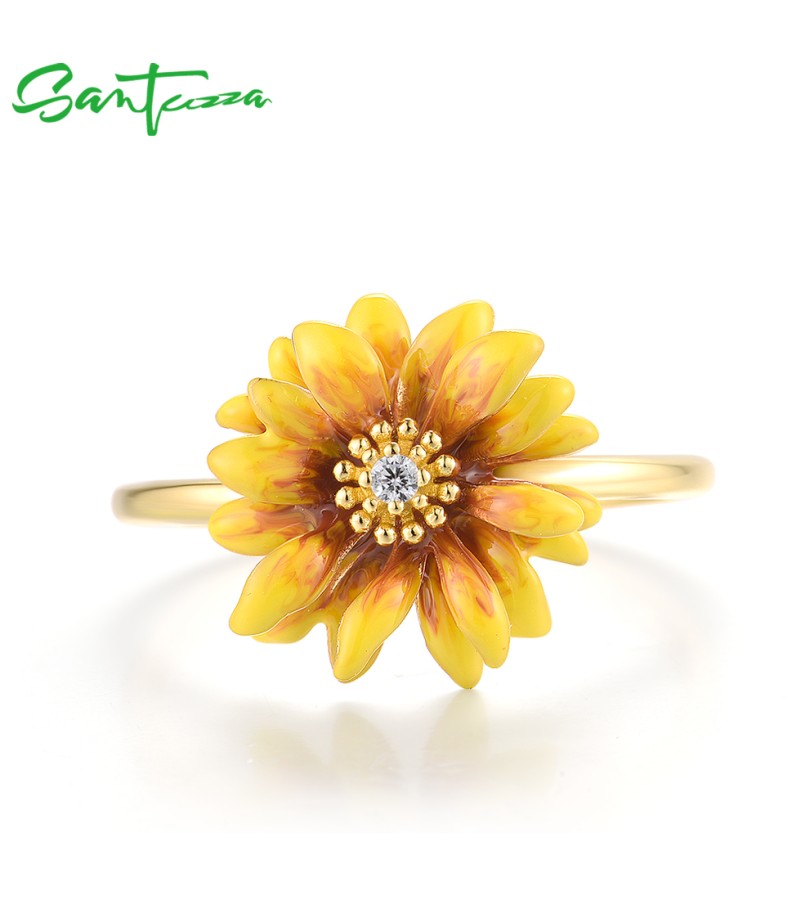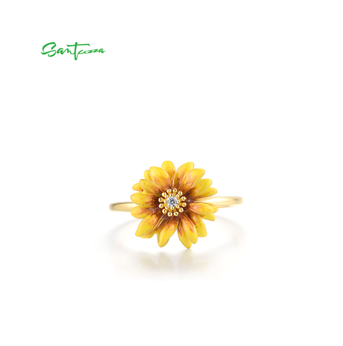 SANTUZZA 925 Sterling Silver Rings White CZ Yellow Enamel Flower Fine Jewelry
