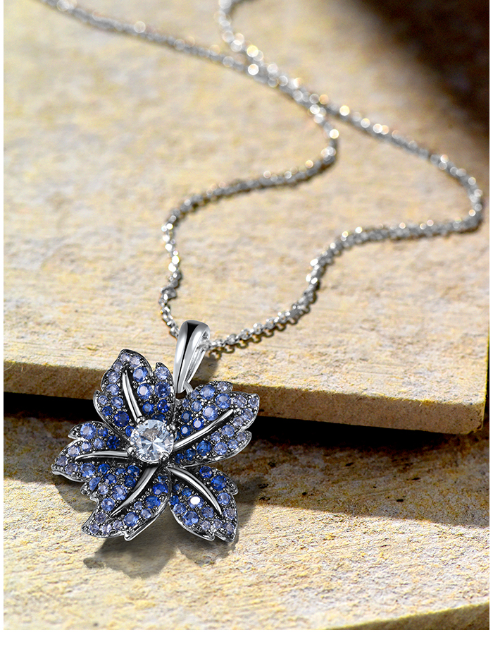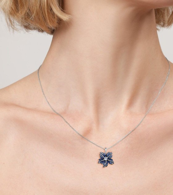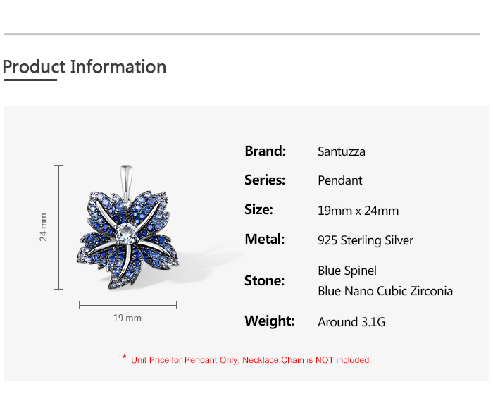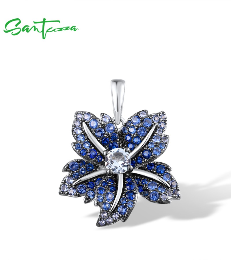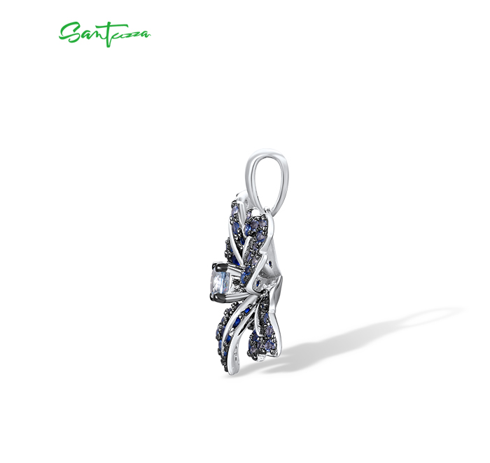 SANTUZZA 925 Sterling Silver Pendant Sparkling Blue Pink Color Lily Flower Jewelry