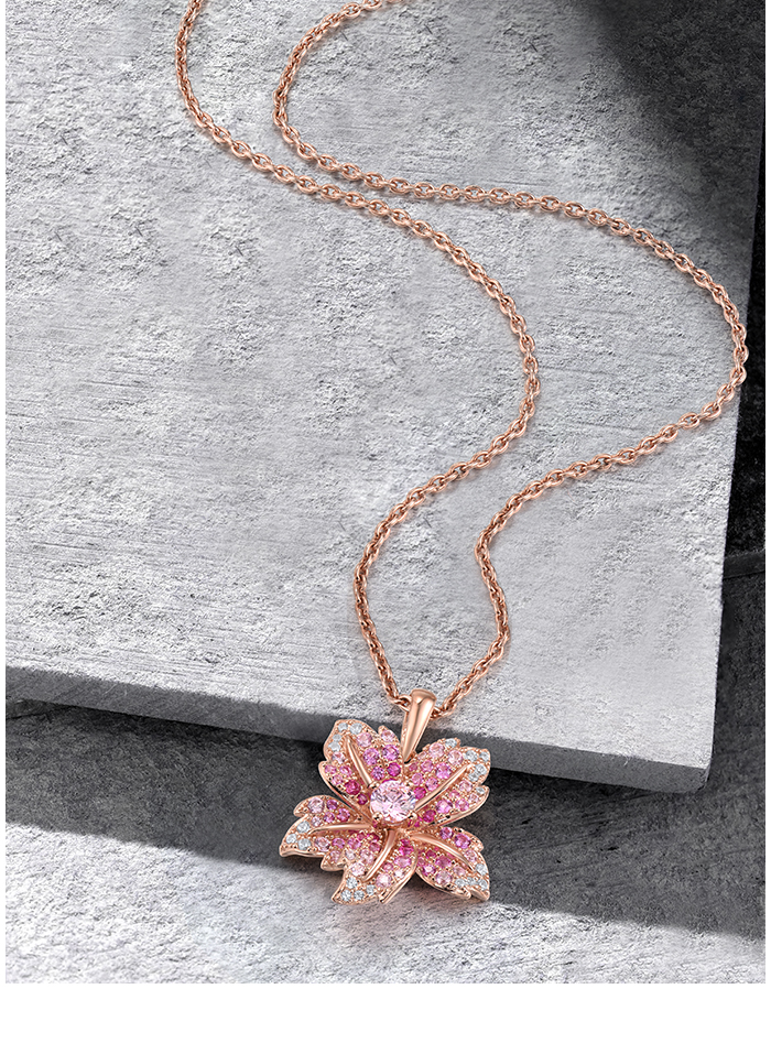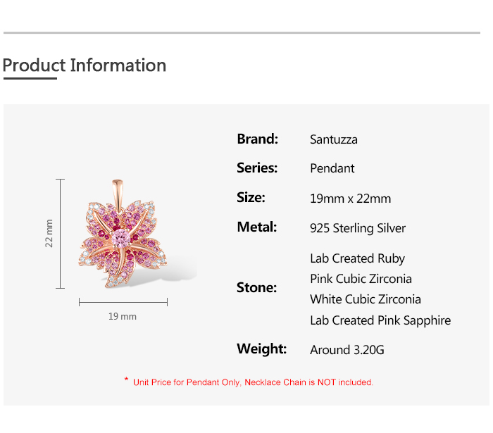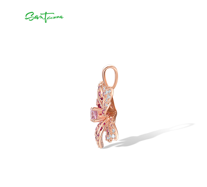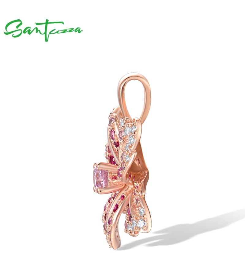 SANTUZZA 925 Sterling Silver Pendant Sparkling Blue Pink Color Lily Flower Jewelry - Pink and Red Stones/Rose Gold Plating
