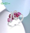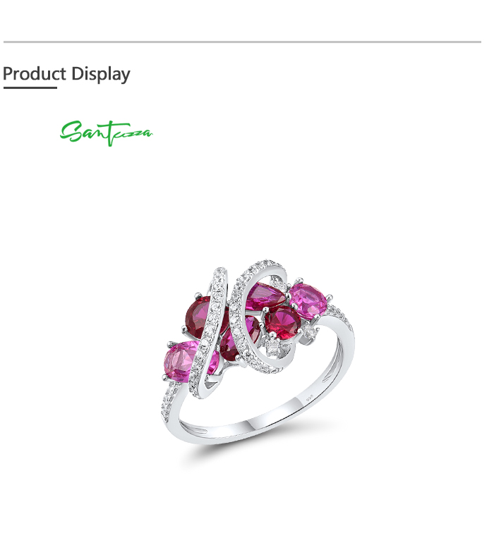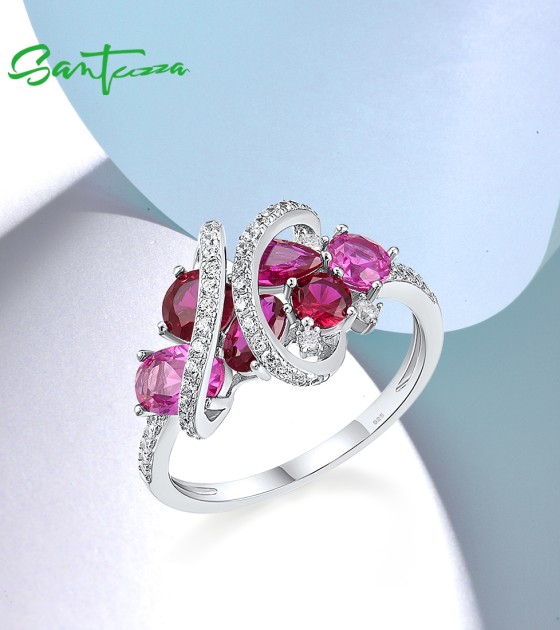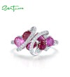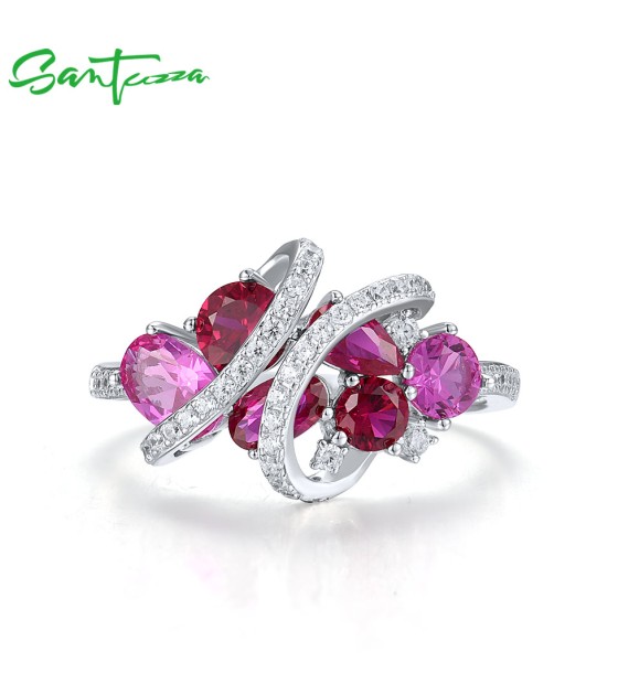SANTUZZA 925 Sterling Silver Rings Created Pink Sapphire Ruby White CZ Fine Jewelry