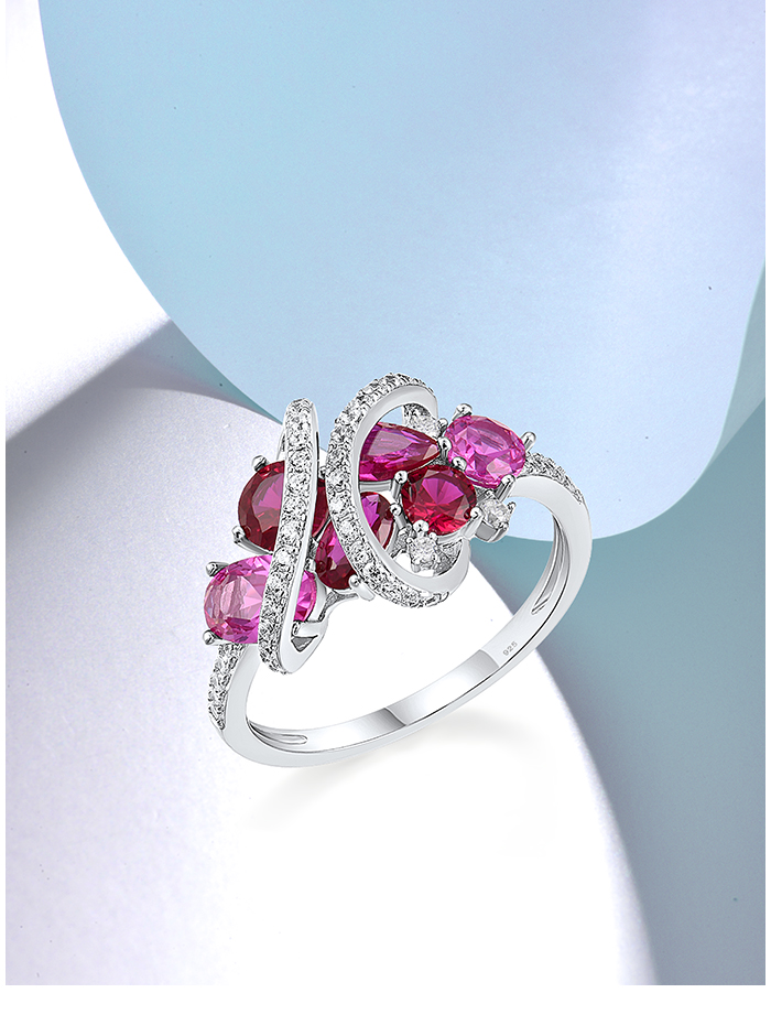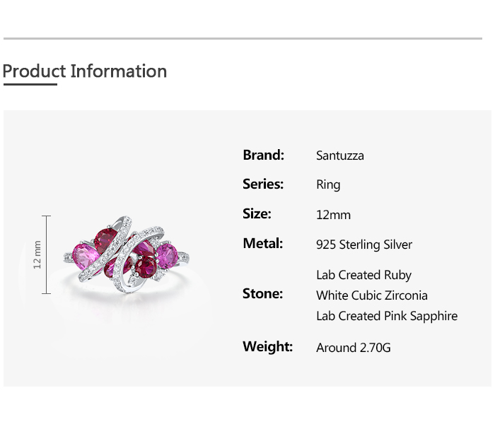 SANTUZZA 925 Sterling Silver Rings Created Pink Sapphire Ruby White CZ Fine Jewelry - US 6.5