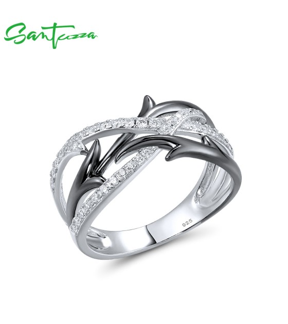SANTUZZA 925 Sterling Silver Ring Sparkling White Cubic Zirconia Jewelry