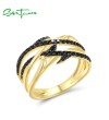 SANTUZZA 925 Sterling Silver Rings Black Spinel Yellow Plated Fine Jewelry