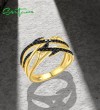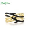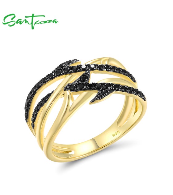 SANTUZZA 925 Sterling Silver Rings Black Spinel Yellow Plated Fine Jewelry