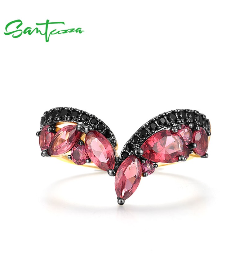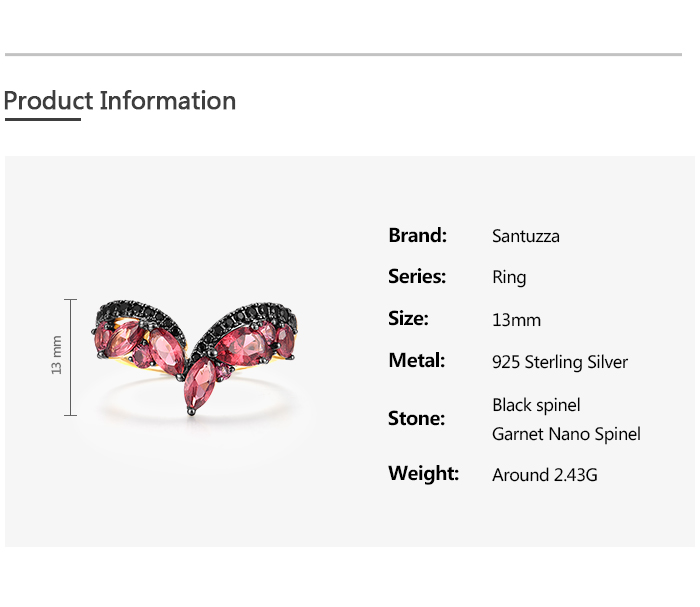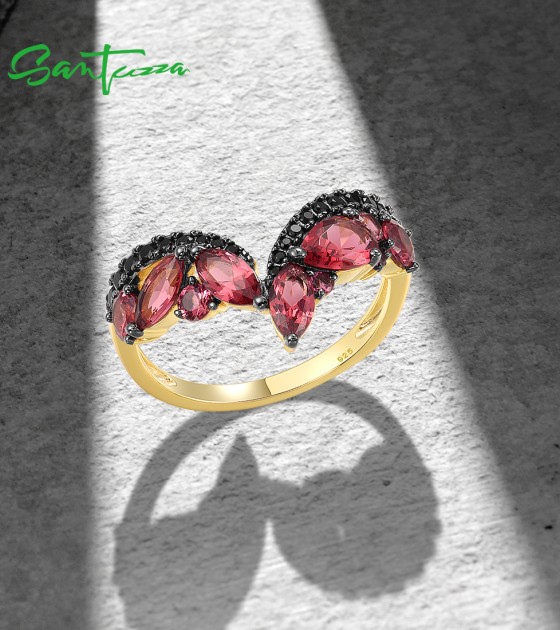 SANTUZZA 925 Sterling Silver Rings Garnet Nano Spinel Fine Jewelry