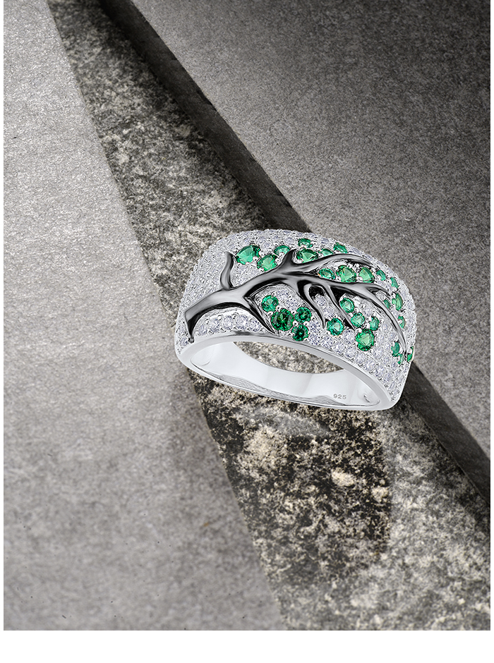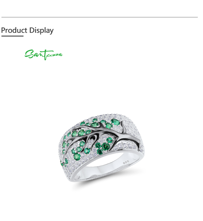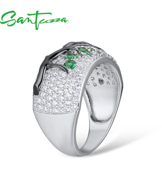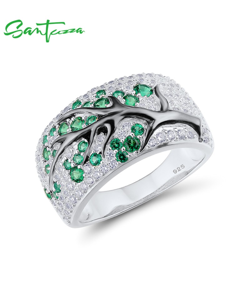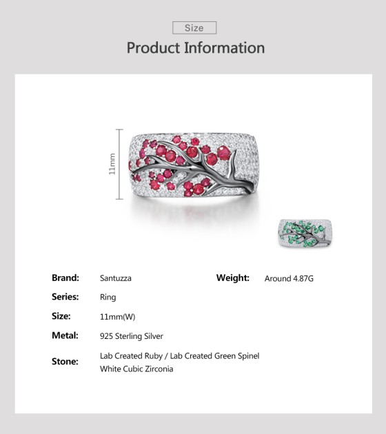 SANTUZZA Ring 925 Sterling Silver Red Green Cherry Tree Cubic Zirconia Jewelry - Green Stones/US 8