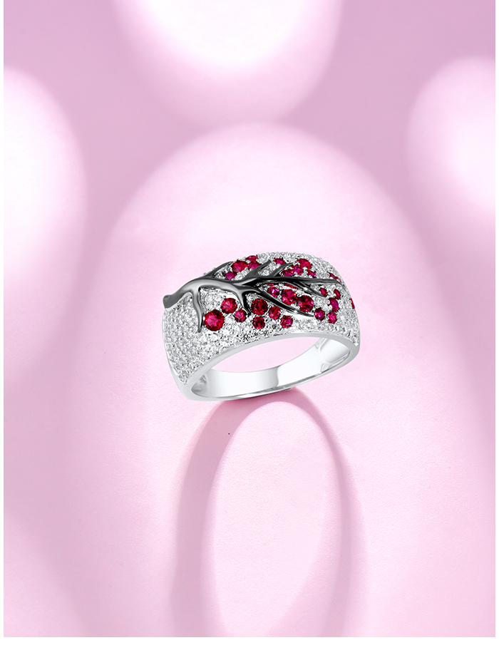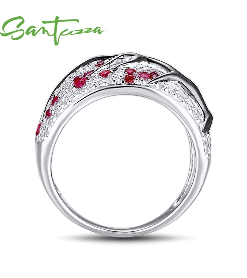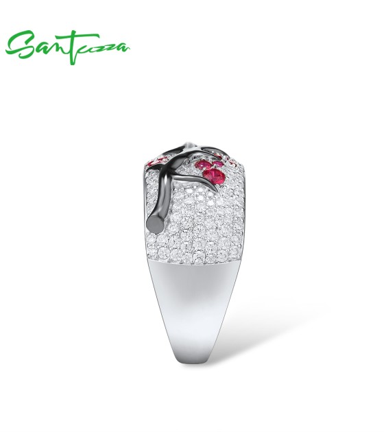 SANTUZZA Ring 925 Sterling Silver Red Green Cherry Tree Cubic Zirconia Jewelry - Pink and Red Stones/US 6.5