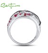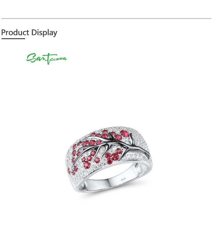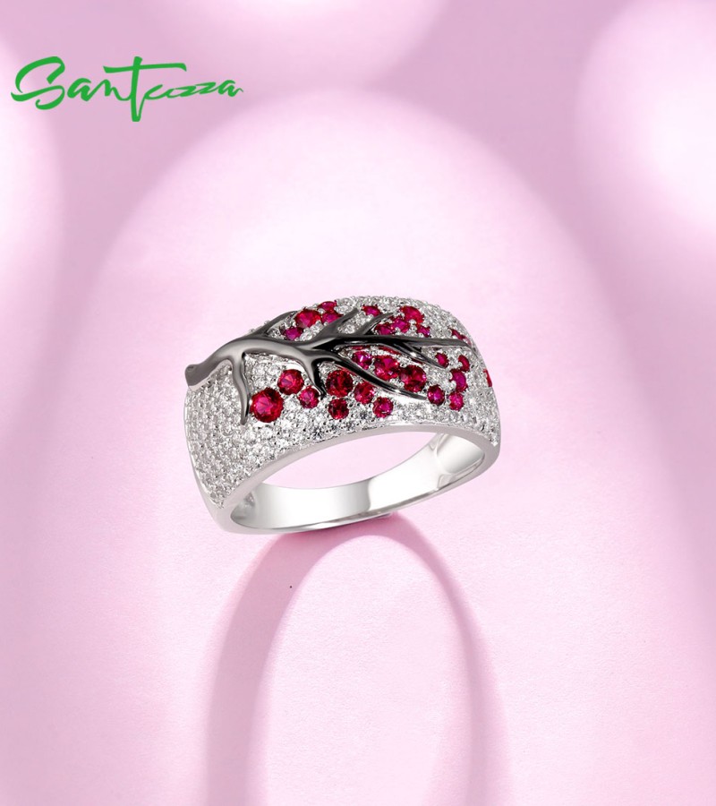 SANTUZZA Ring 925 Sterling Silver Red Green Cherry Tree Cubic Zirconia Jewelry - Pink and Red Stones/US 8.5