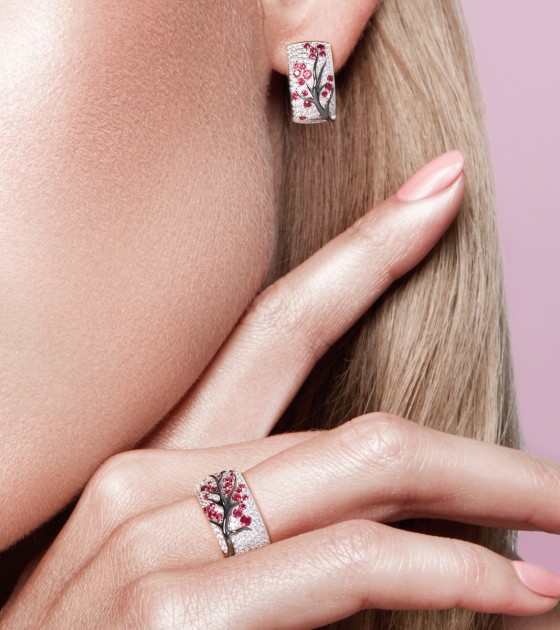 SANTUZZA Ring 925 Sterling Silver Red Green Cherry Tree Cubic Zirconia Jewelry - Pink and Red Stones/US 8