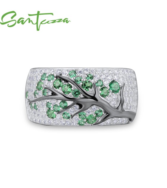 SANTUZZA Ring 925 Sterling Silver Red Green Cherry Tree Cubic Zirconia Jewelry - Green Stones/US 6.5
