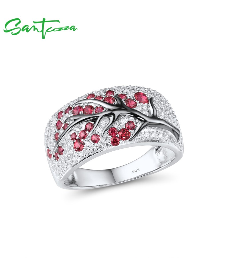 SANTUZZA Ring 925 Sterling Silver Red Green Cherry Tree Cubic Zirconia Jewelry