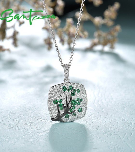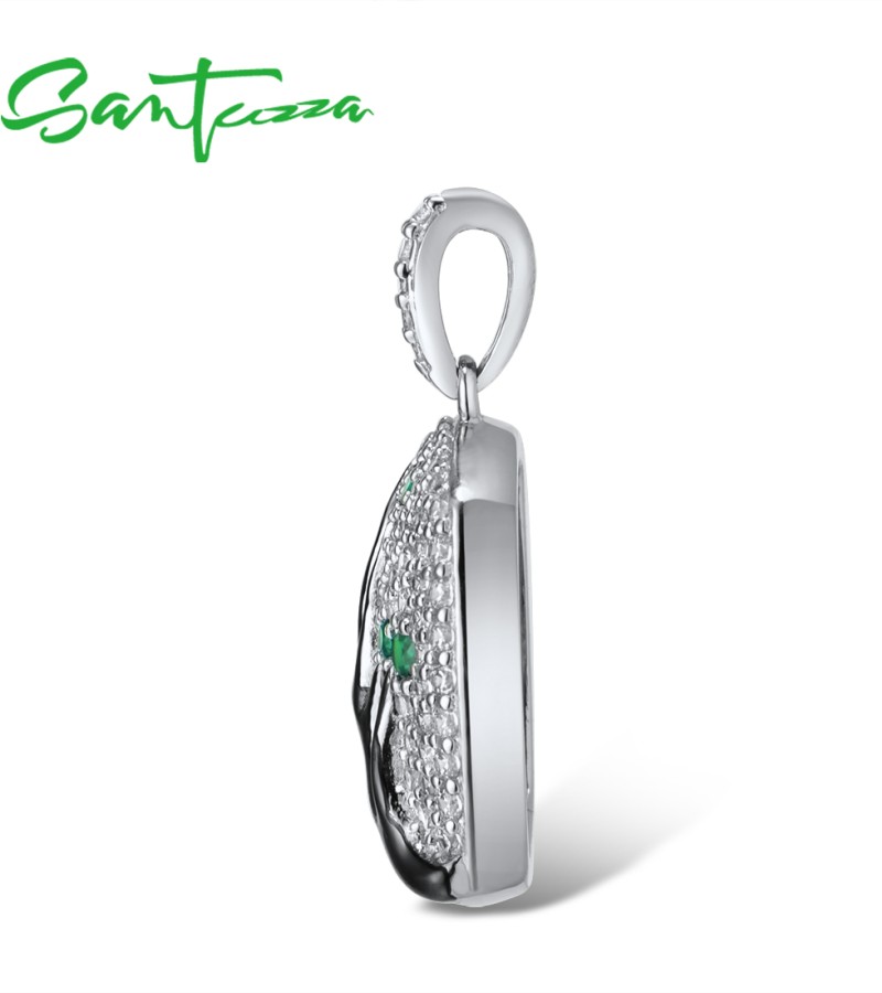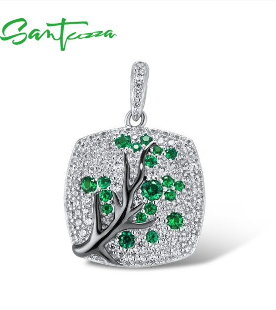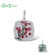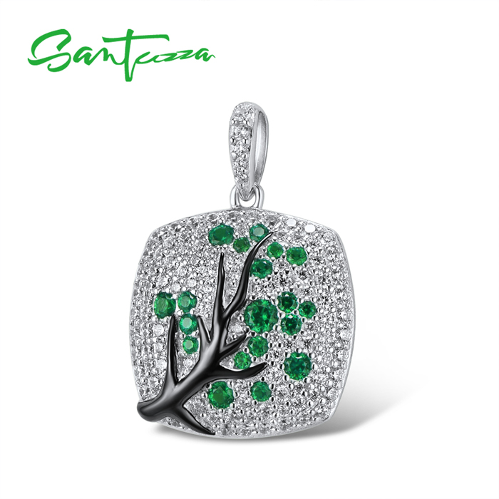 SANTUZZA 925 Sterling Silver Pendant Without Chain Pink Green Cherry Tree White CZ Jewelry