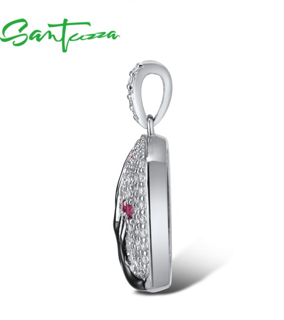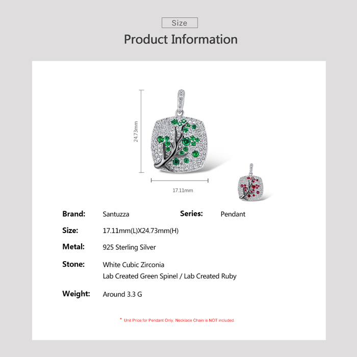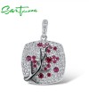 SANTUZZA 925 Sterling Silver Pendant Without Chain Pink Green Cherry Tree White CZ Jewelry - Pink and Red Stones