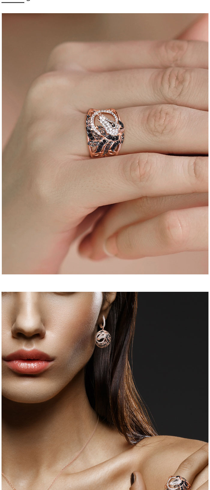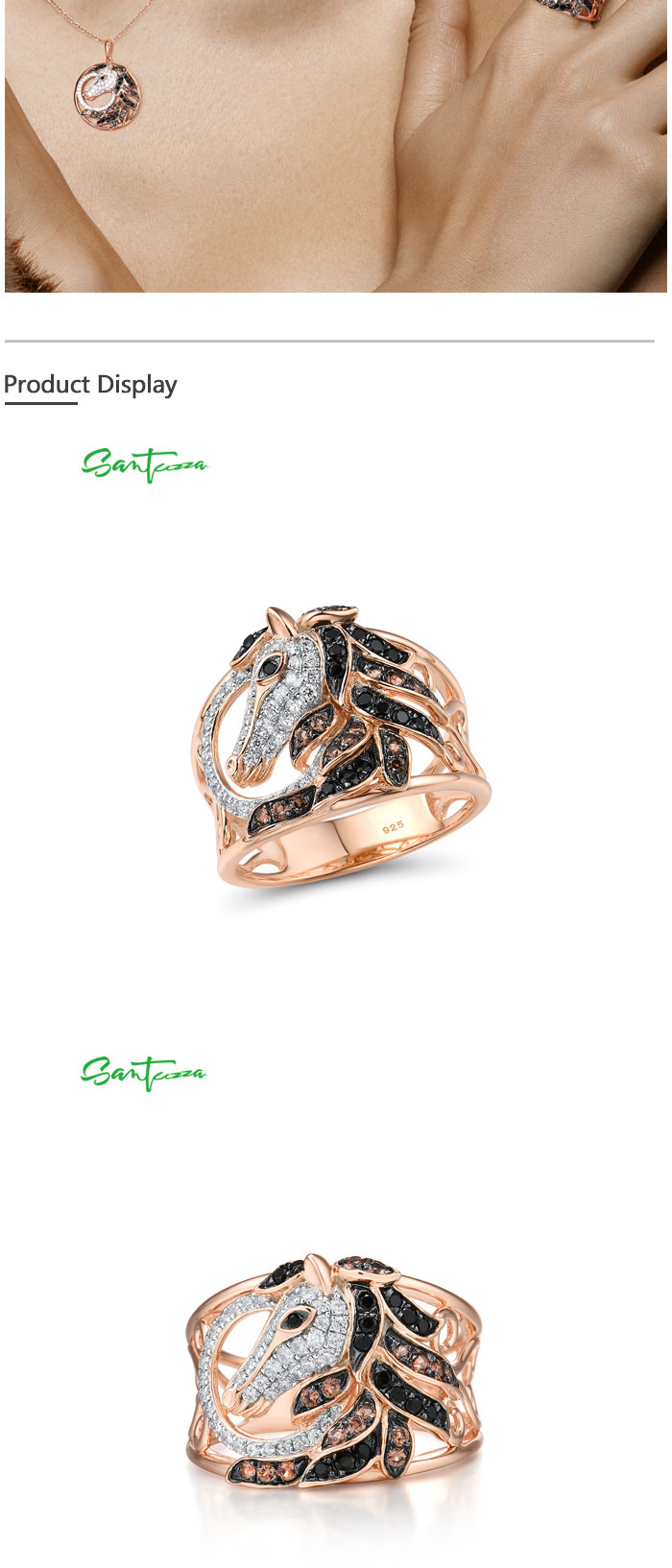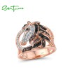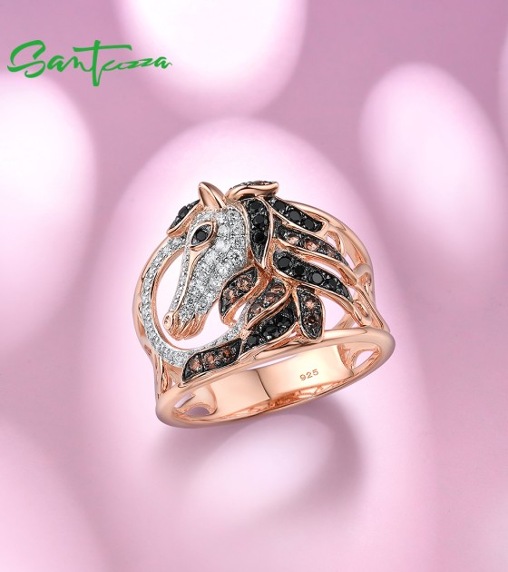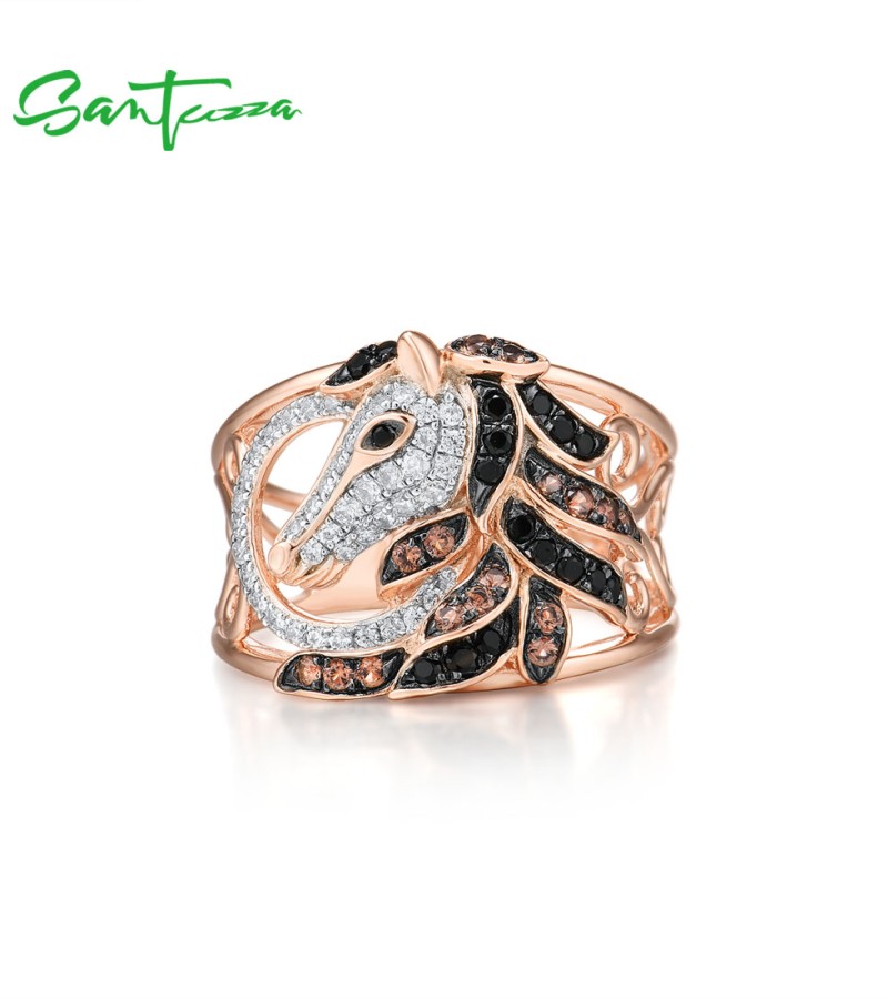 SANTUZZA 925 Sterling Silver Ring Rose Gold Color Black Brown Horse Hollow Fine Jewelry
