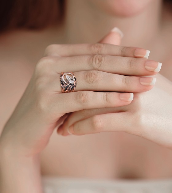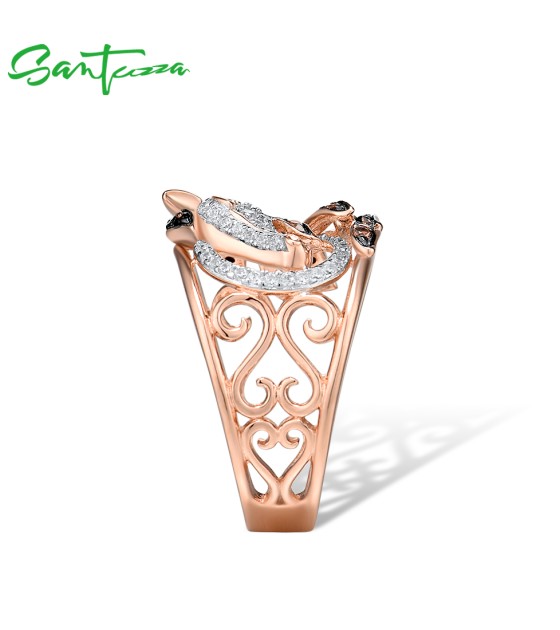 SANTUZZA 925 Sterling Silver Ring Rose Gold Color Black Brown Horse Hollow Fine Jewelry - US 6