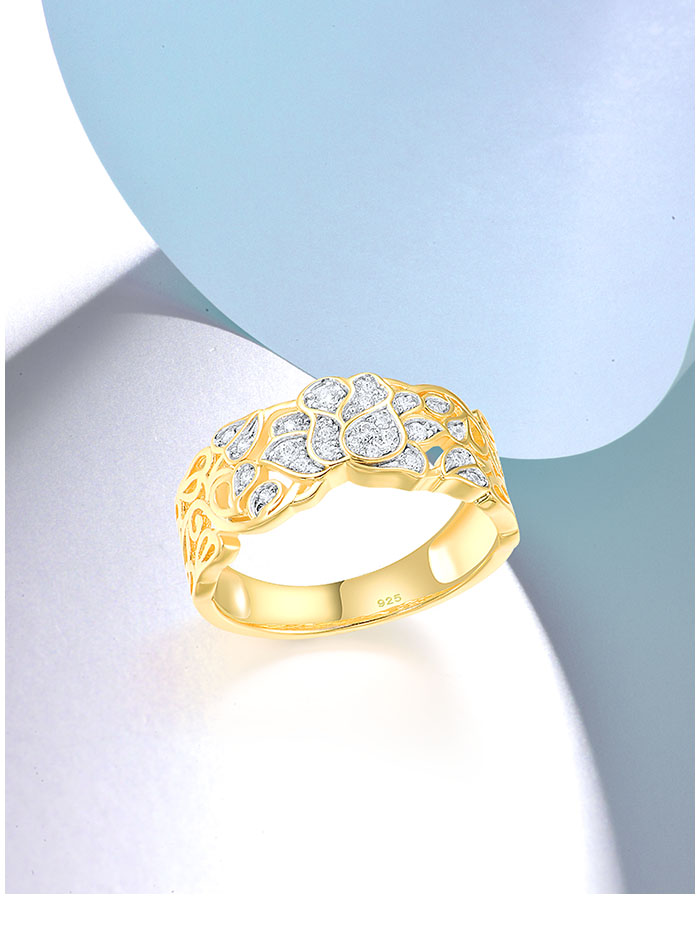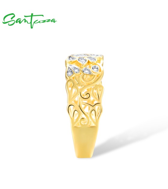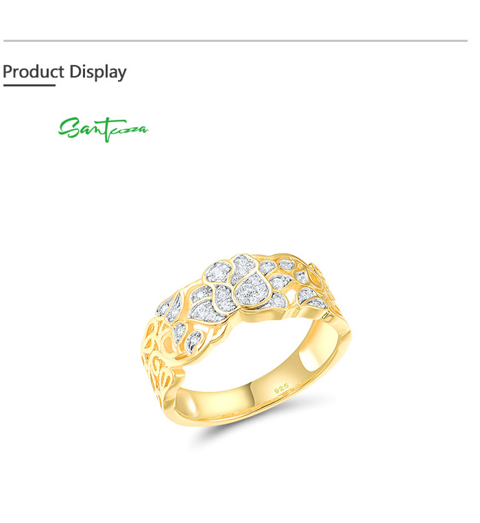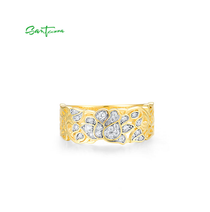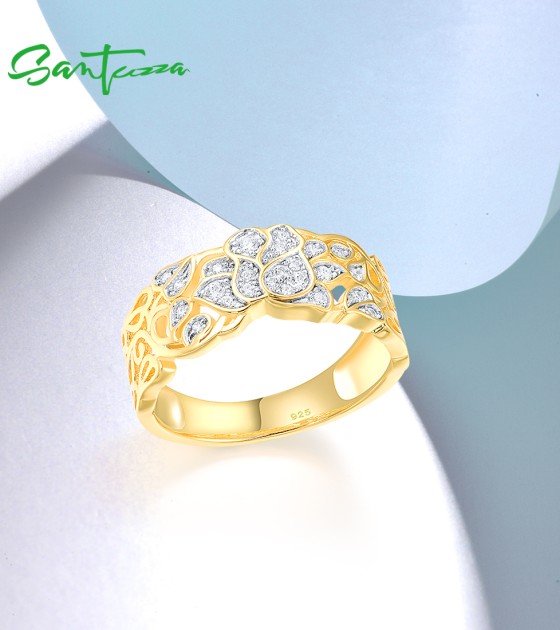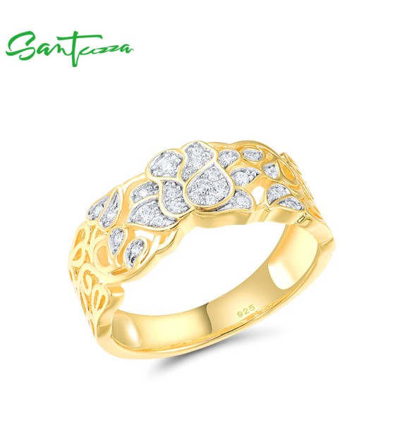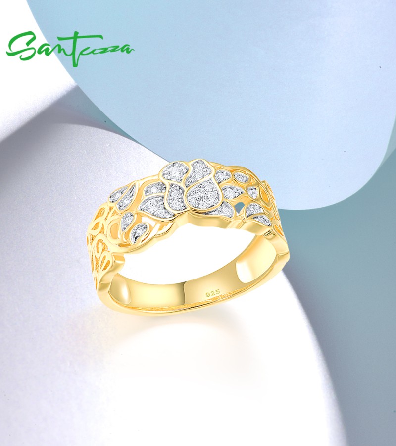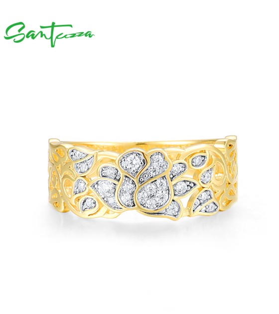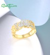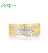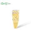 SANTUZZA 925 Sterling Silver Rings White Cubic Zirconia Hollow Lotus Flower Ring Fine Jewelry