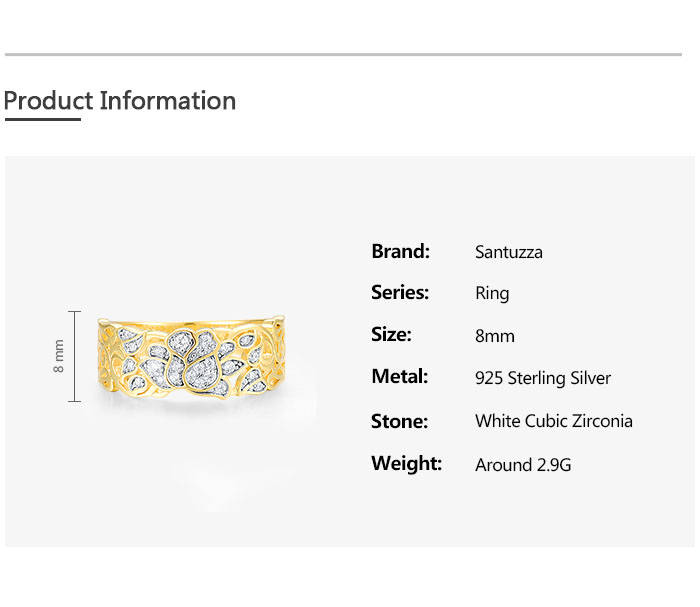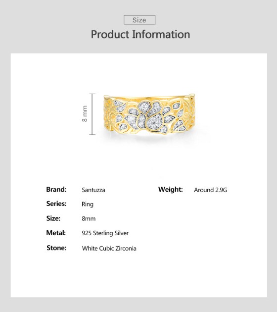 SANTUZZA 925 Sterling Silver Rings White Cubic Zirconia Hollow Lotus Flower Ring Fine Jewelry - US 8