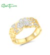 SANTUZZA 925 Sterling Silver Rings White Cubic Zirconia Hollow Lotus Flower Ring Fine Jewelry