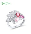 SANTUZZA 925 Sterling Silver Rings Red Pink Stones White CZ Cluster Ring Fine Jewelry