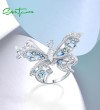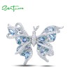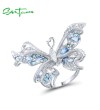 SANTUZZA 925 Sterling Silver Rings Blue Spinel White CZ Butterfly Ring Fine Jewelry